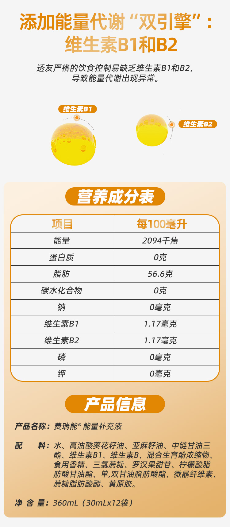 费瑞能高能营养液口服液能量补充液 360ml/盒