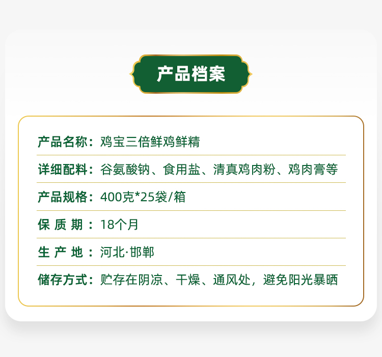 伊穆家园·鸡宝3倍鲜优质鸡精(400g*25袋/箱)