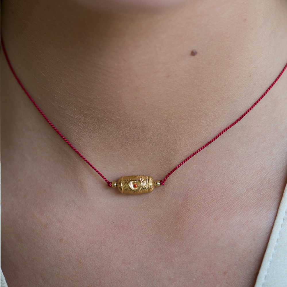 北京仓|Dorothee sausset-Choker Rakhi Mon coeur fil rouge-红绳 22k镀金 石榴石 转运珠 项链[法国设计师]