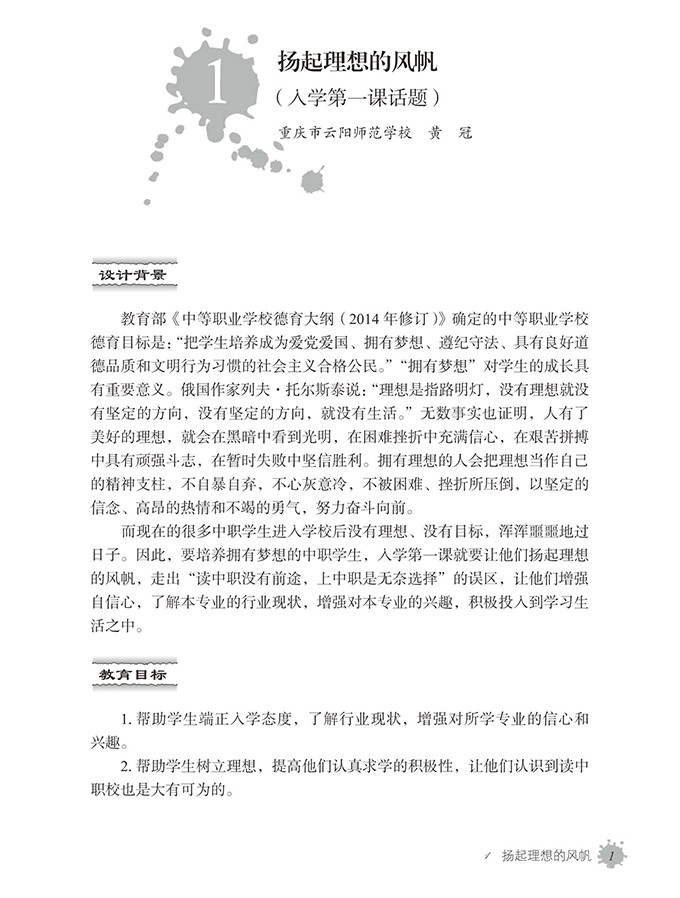 1扬起理想的风帆(入学第一课话题) 黄 冠 1