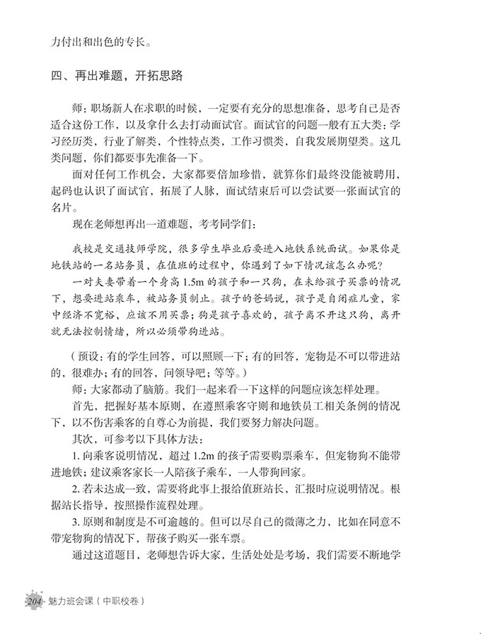 •面向全国中职校一线教师征稿,层层筛选,优中选优,入选的25篇教案主题丰富、内容扎实,多角度全方位地呈现了中职校班会课的魅力,是不可多得的优秀教案集锦。