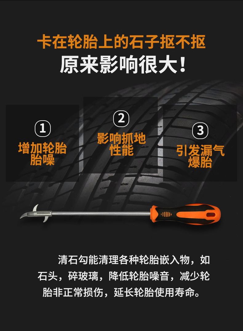 二合一清石钩 汽车轮胎去碎石子清理工具 多功能清石器便携式车胎清理勾