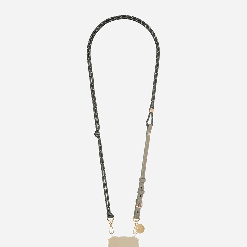 订购8周到|La Coque Française-Colleen-Kaki 柿子灰绿色 织物 长款 手机链[法国设计师]