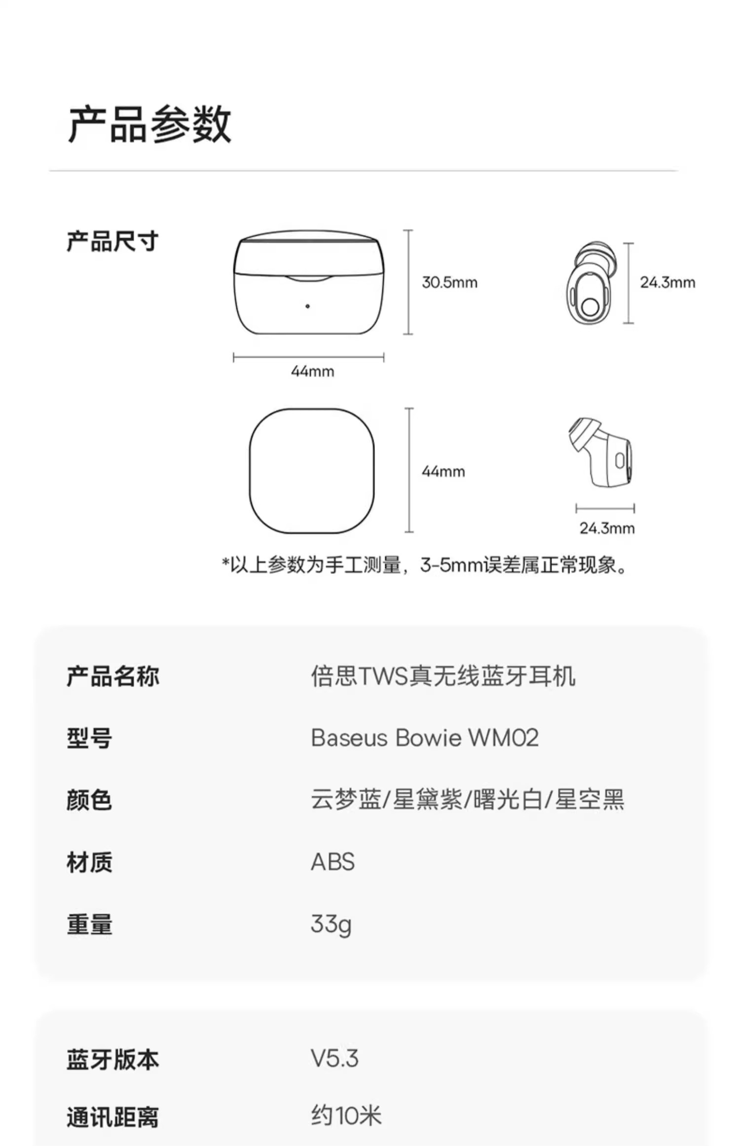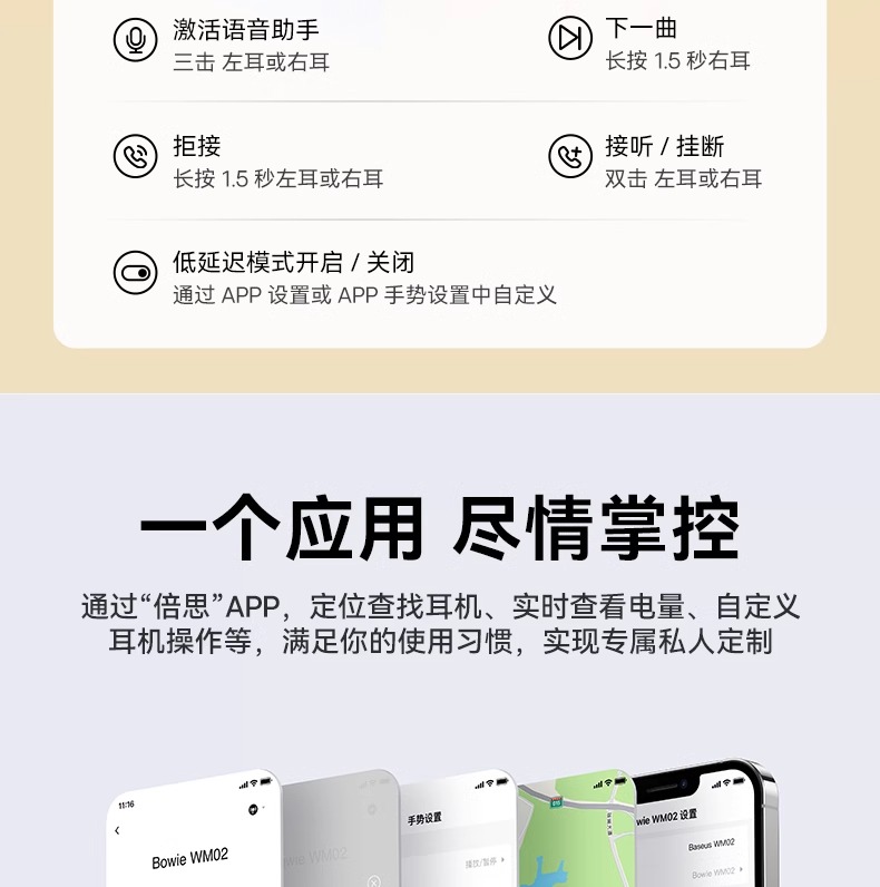 倍思 Bowie系列 WM02 TWS真无线蓝牙耳机2024新款入耳式降噪