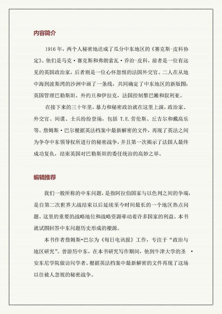 SQ 瓜分沙洲:英国、法国与塑造中东的斗争