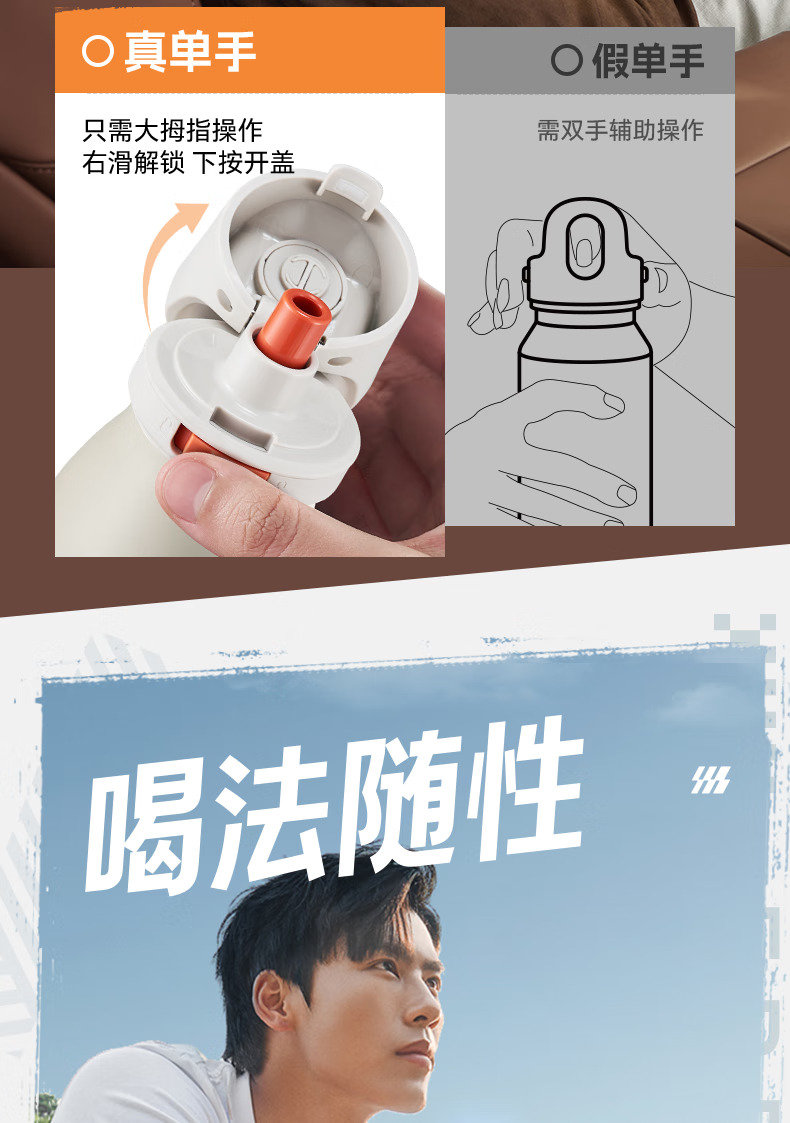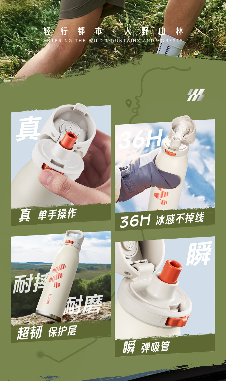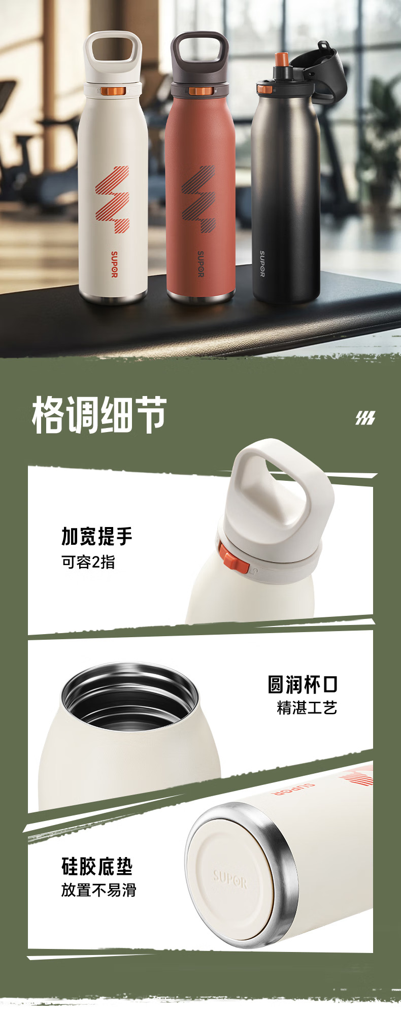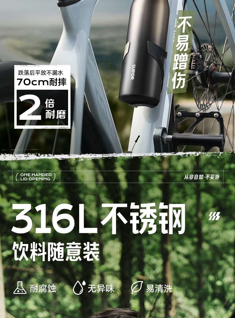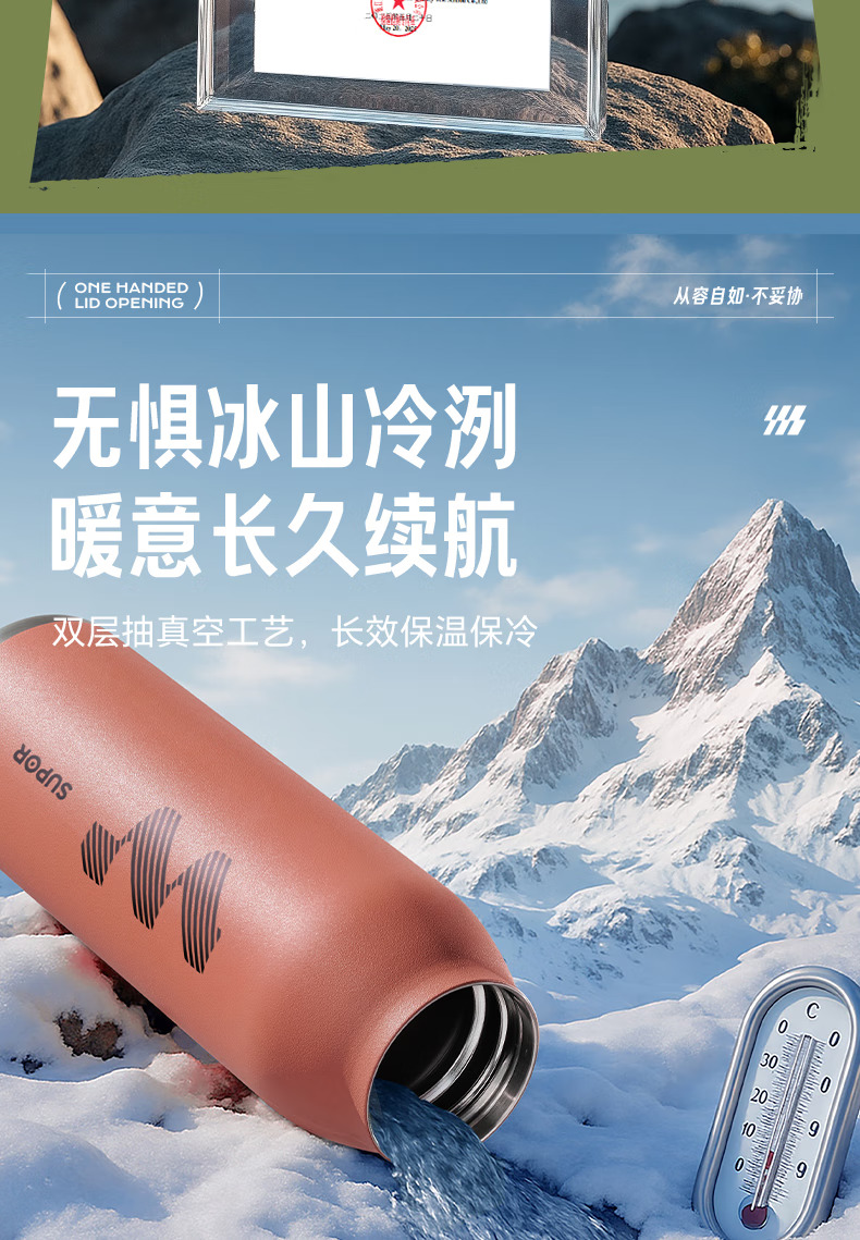 SUPOR苏泊尔保温杯男士大容量水杯不锈钢运动户外便携学生杯子 KCV60DL20红 600ML