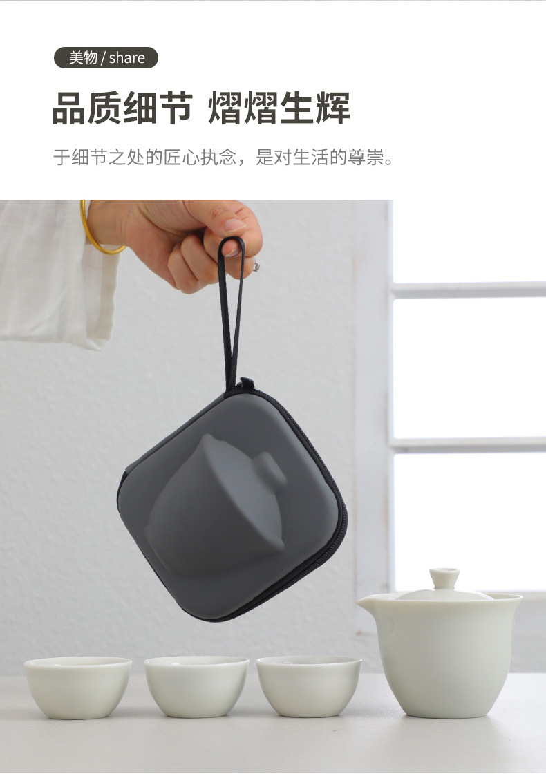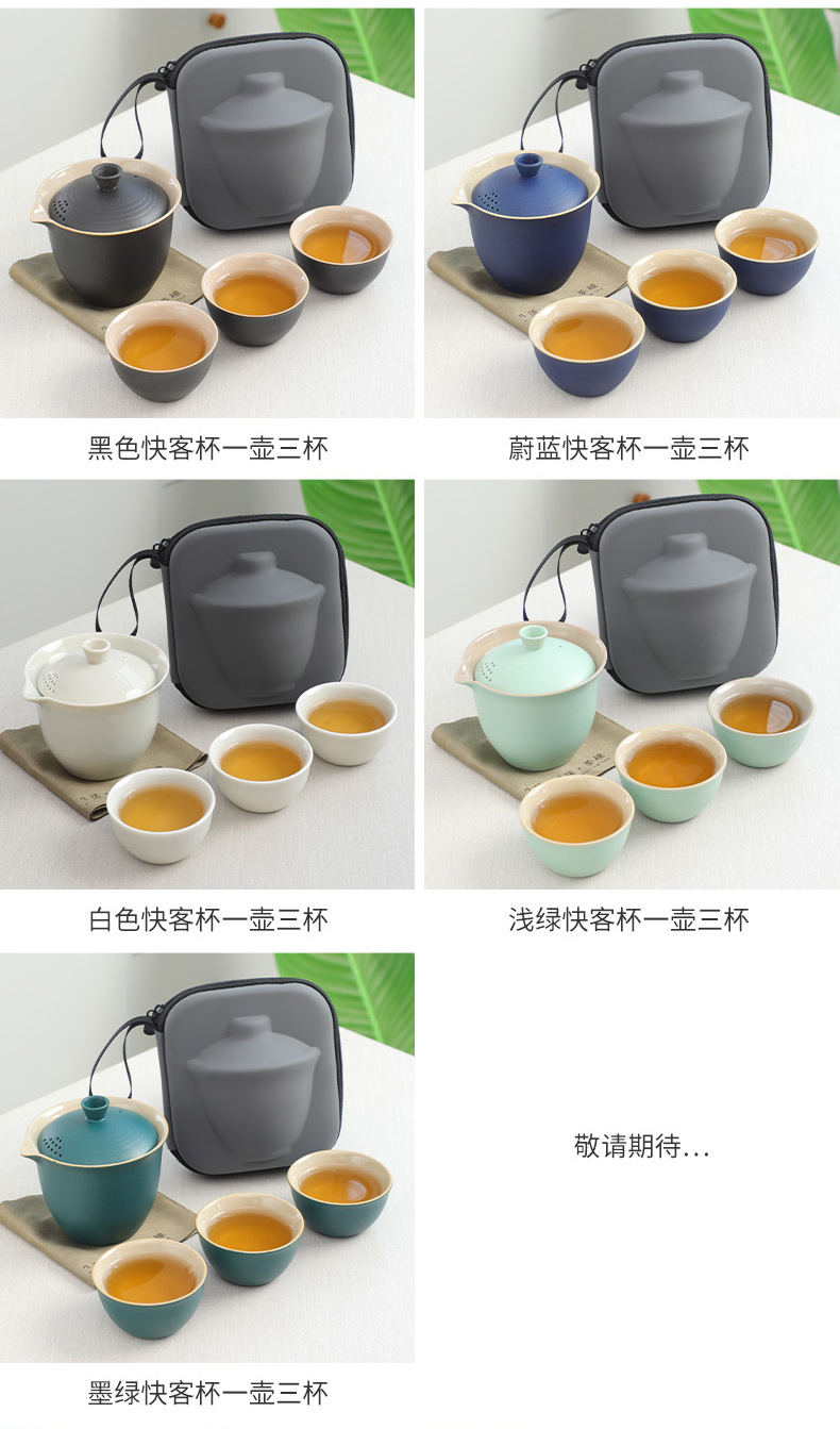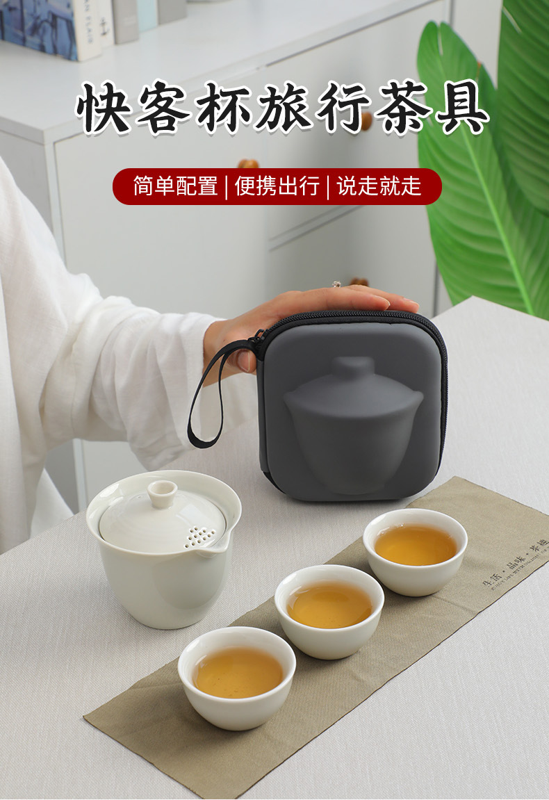 【说走就走❗️快客杯旅行茶具】投茶入壶简化泡茶,一体式旅行收纳设计,内壁洁白通透,易清洗,户外便携式一壶三杯陶瓷旅行茶具收纳包QQ