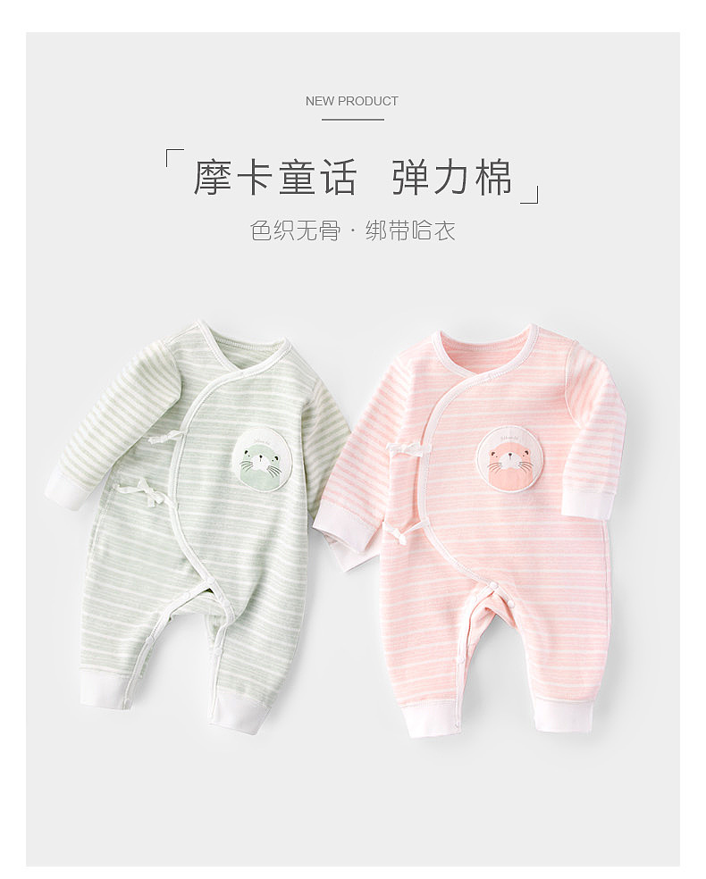 【母婴】婴得宝新生儿衣服秋无骨初生宝宝哈衣婴儿连体衣婴儿和尚绑带爬服