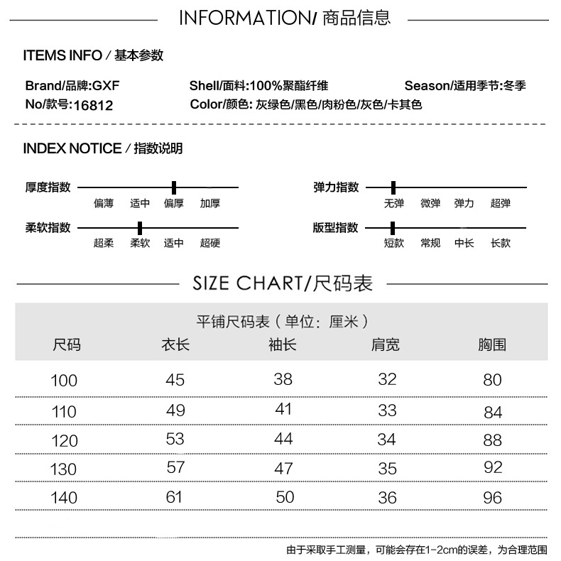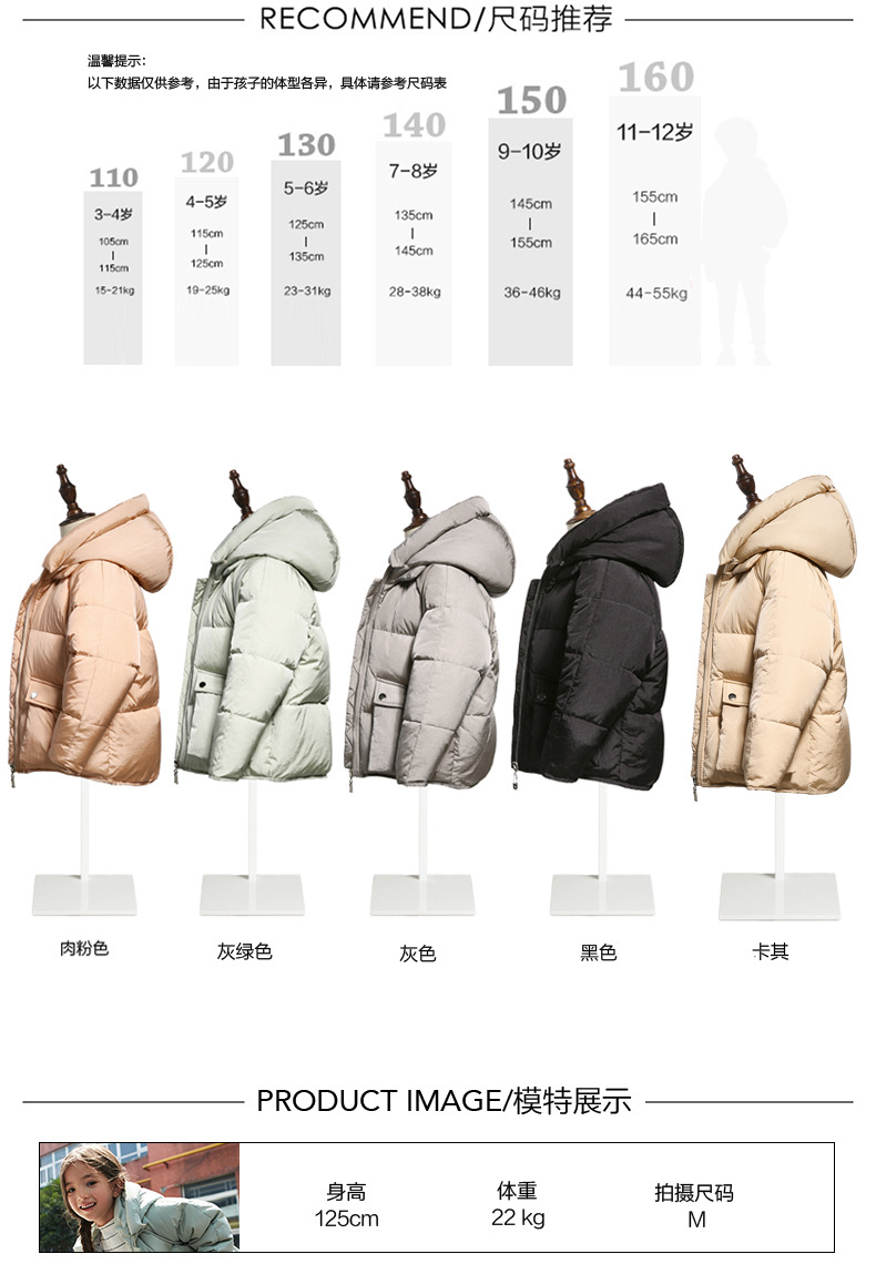 【羽绒服女】GXF新款儿童羽绒女童装宝宝短款外套韩版轻薄面包服