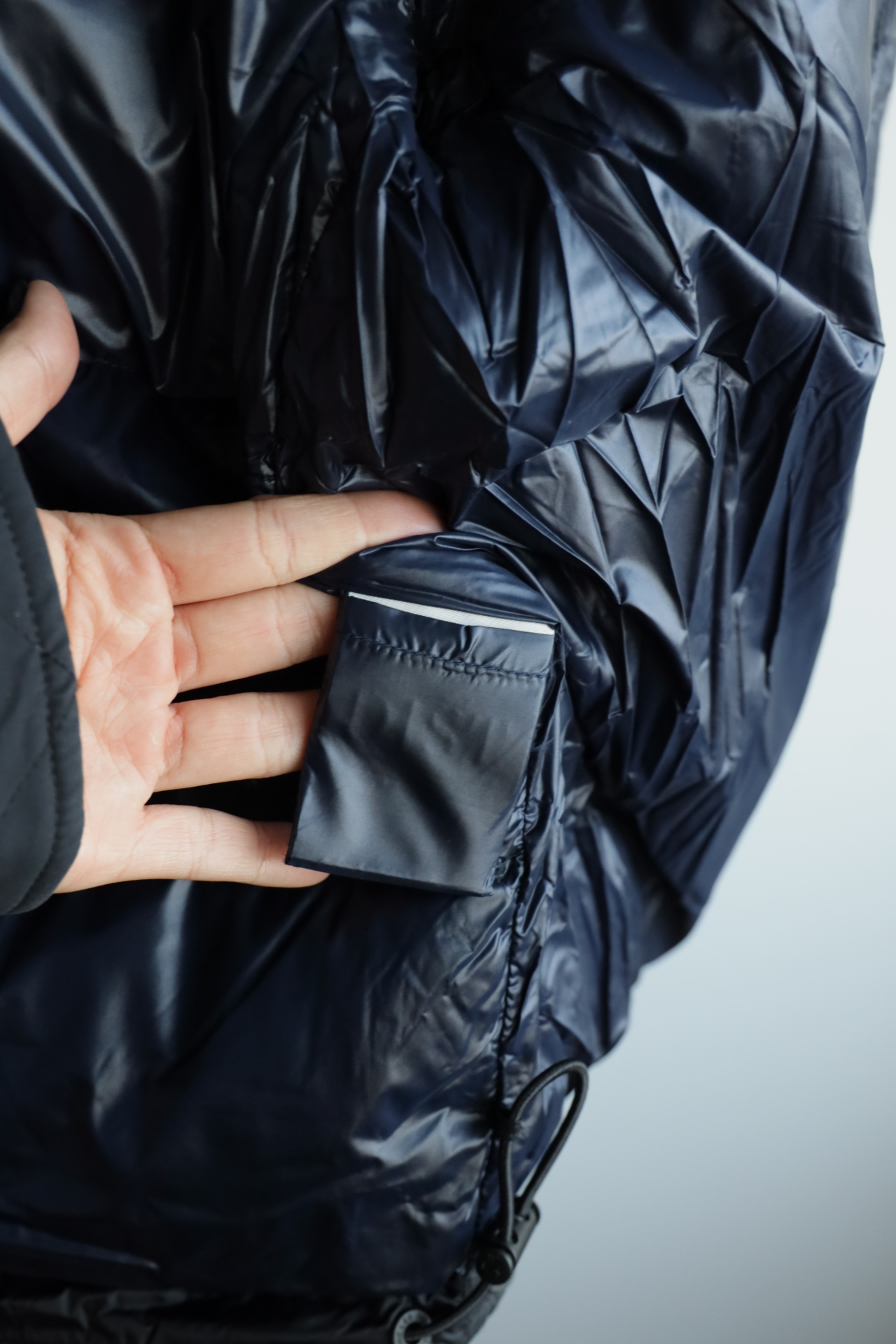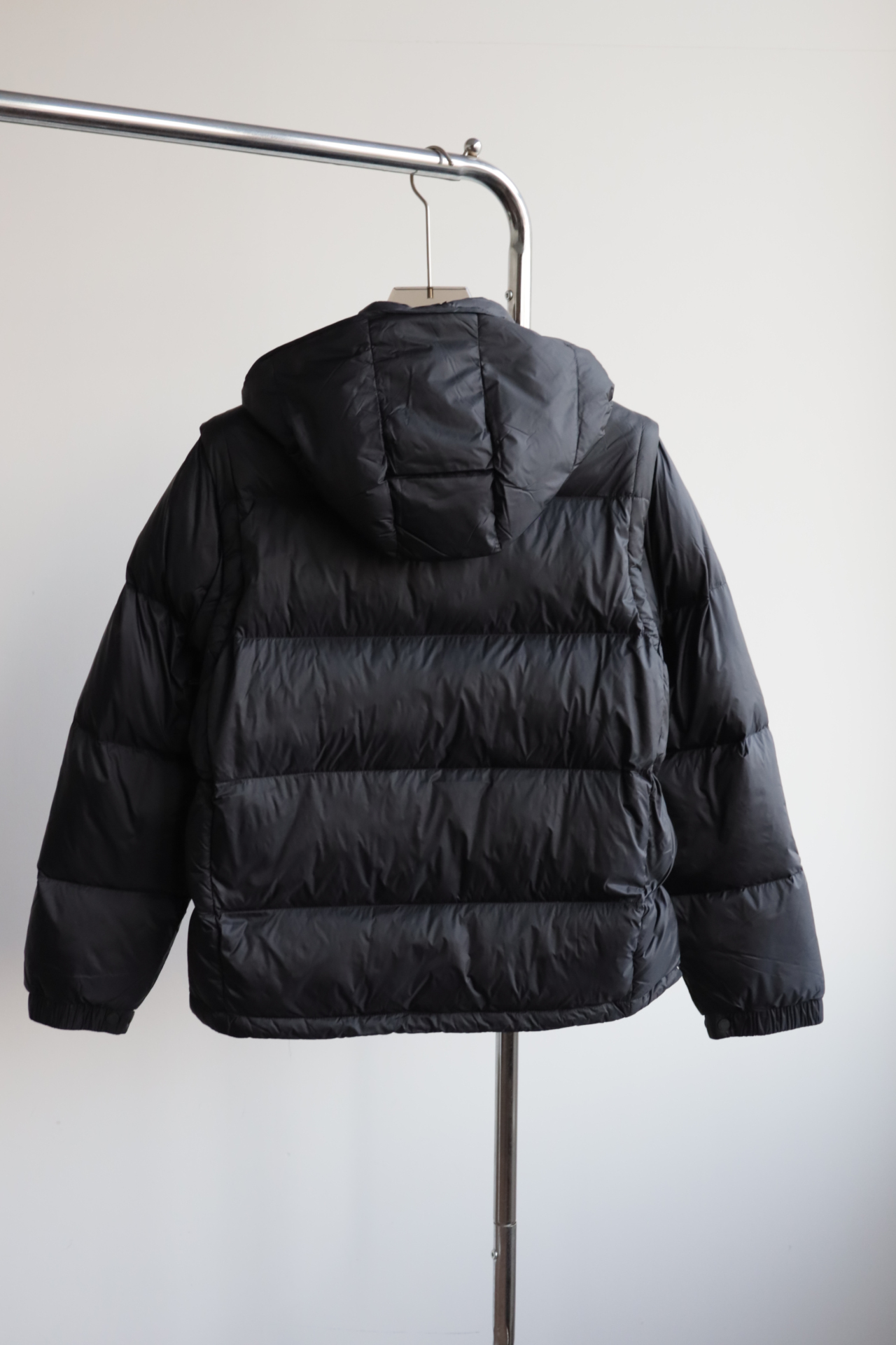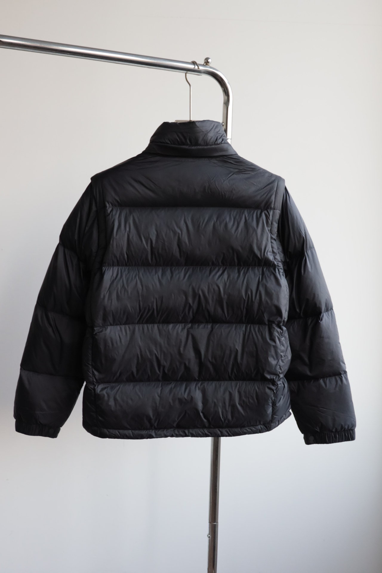 羽绒服搭配可拆卸衣袖,可作为马甲或夹克穿着。