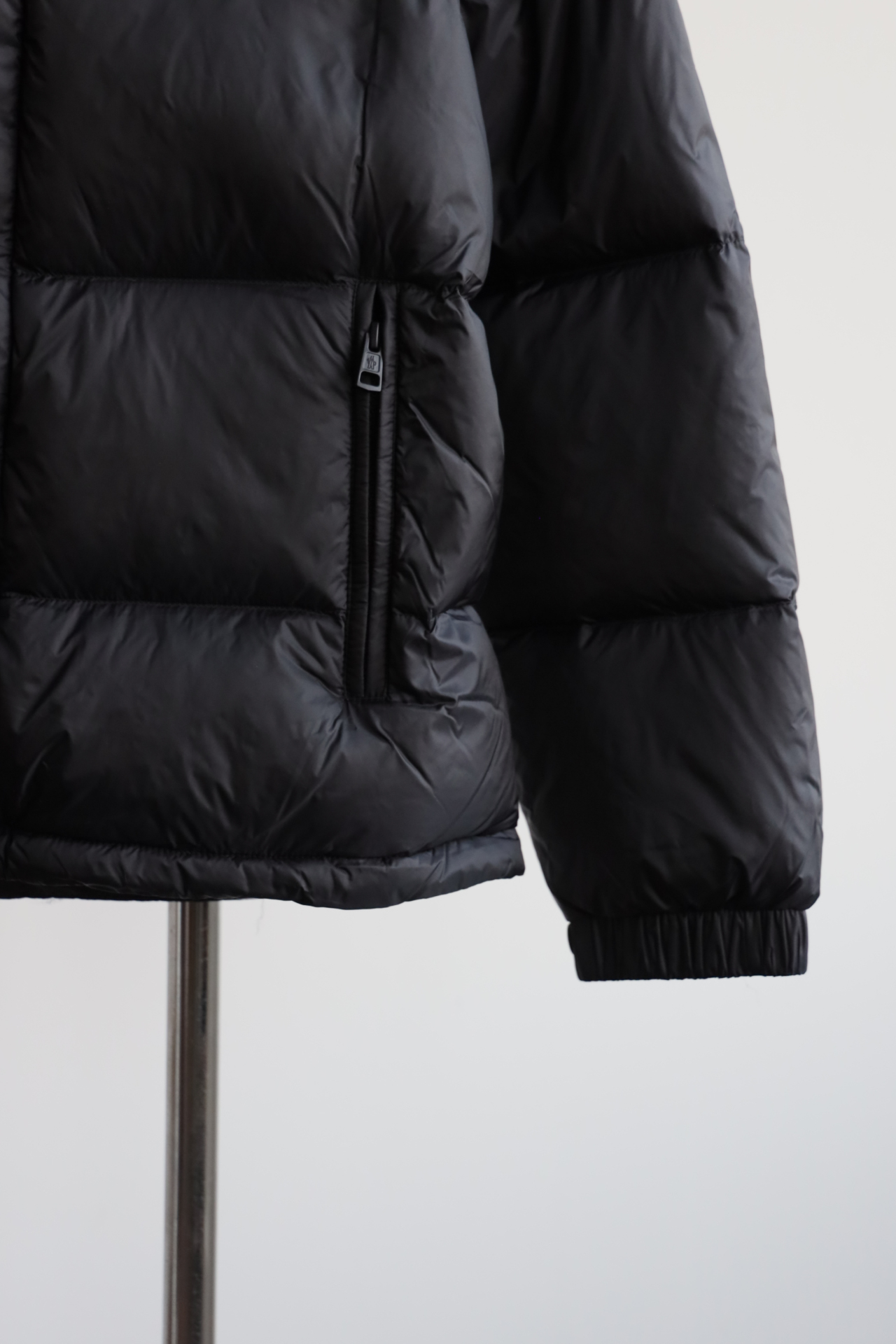 这款短款羽绒服由尼龙面料制成,衣袖可轻松拆卸,便于将夹克转换为马甲穿着。可拆卸兜帽和撞色衬里为设计锦上添花。