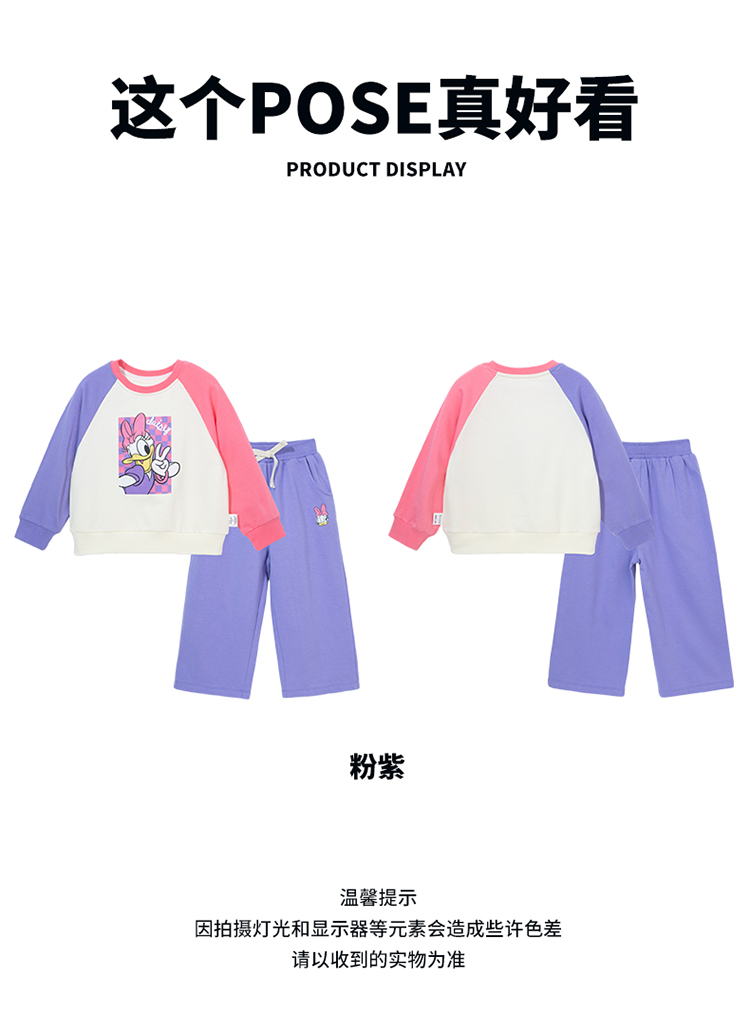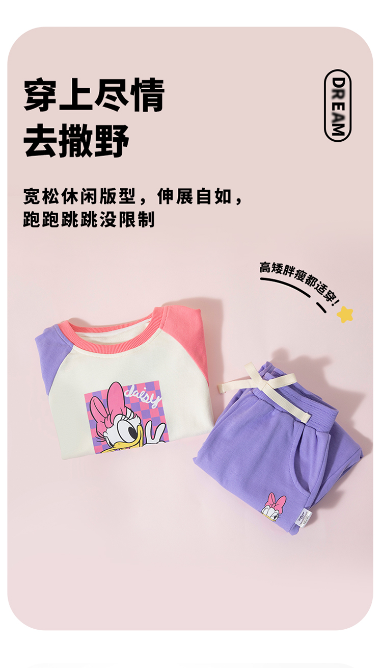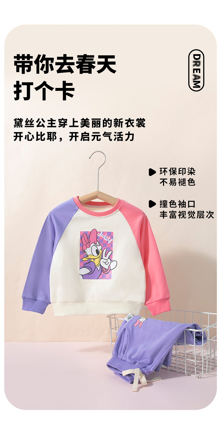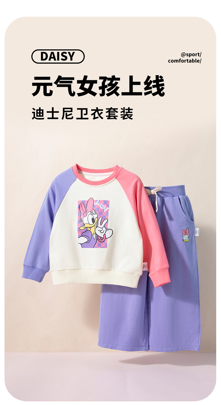 迪士尼24春款女童套装插肩袖套装运动休闲卫衣卫裤两件套