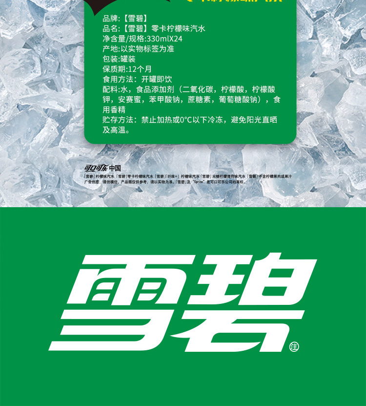 雪碧无糖清新柠檬味0糖0脂肪碳酸饮料330ml 肥宅快乐水