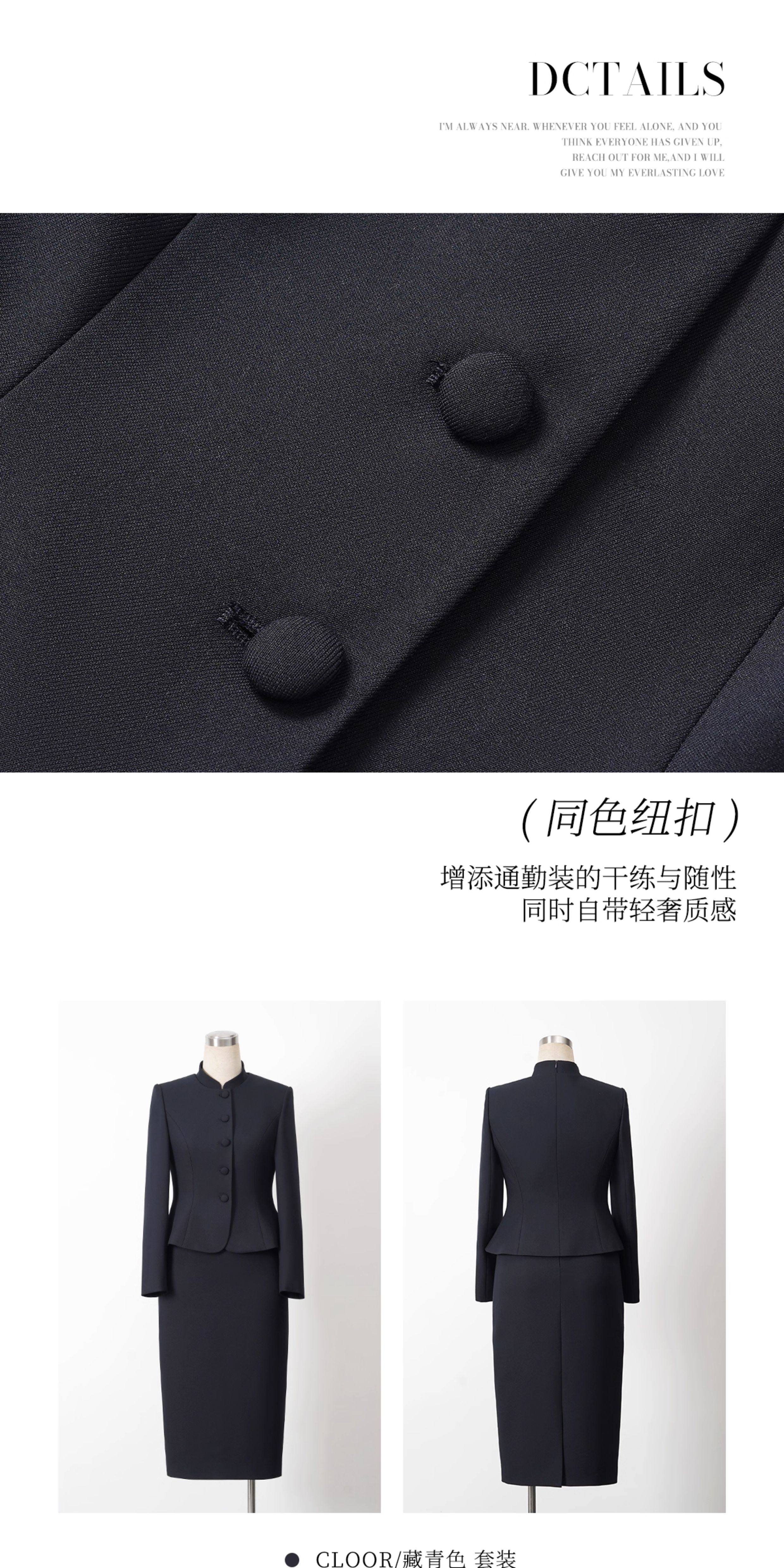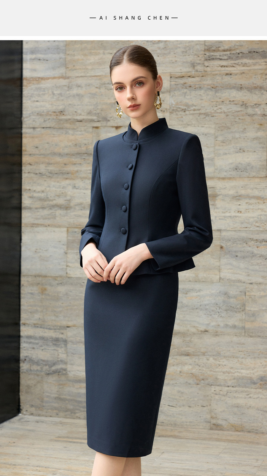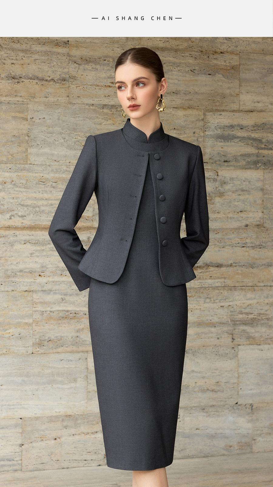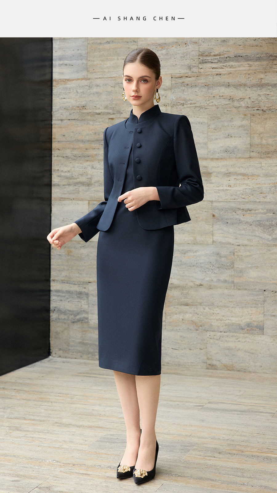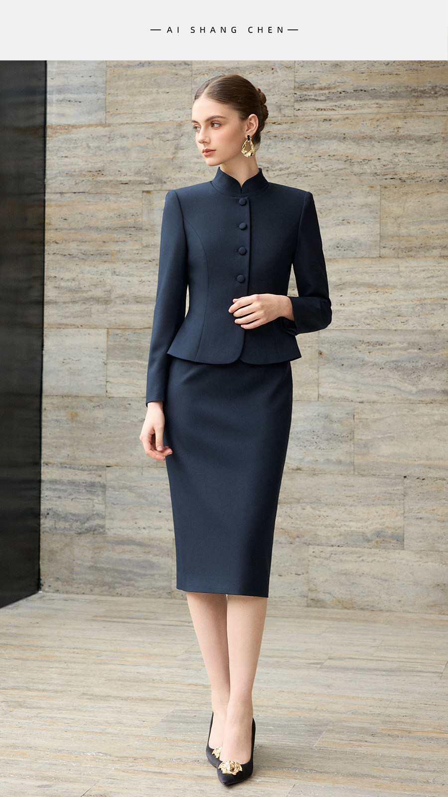 艾尚臣新中式旗袍立领西装套裙商务风套装女两件套高级感气质正装