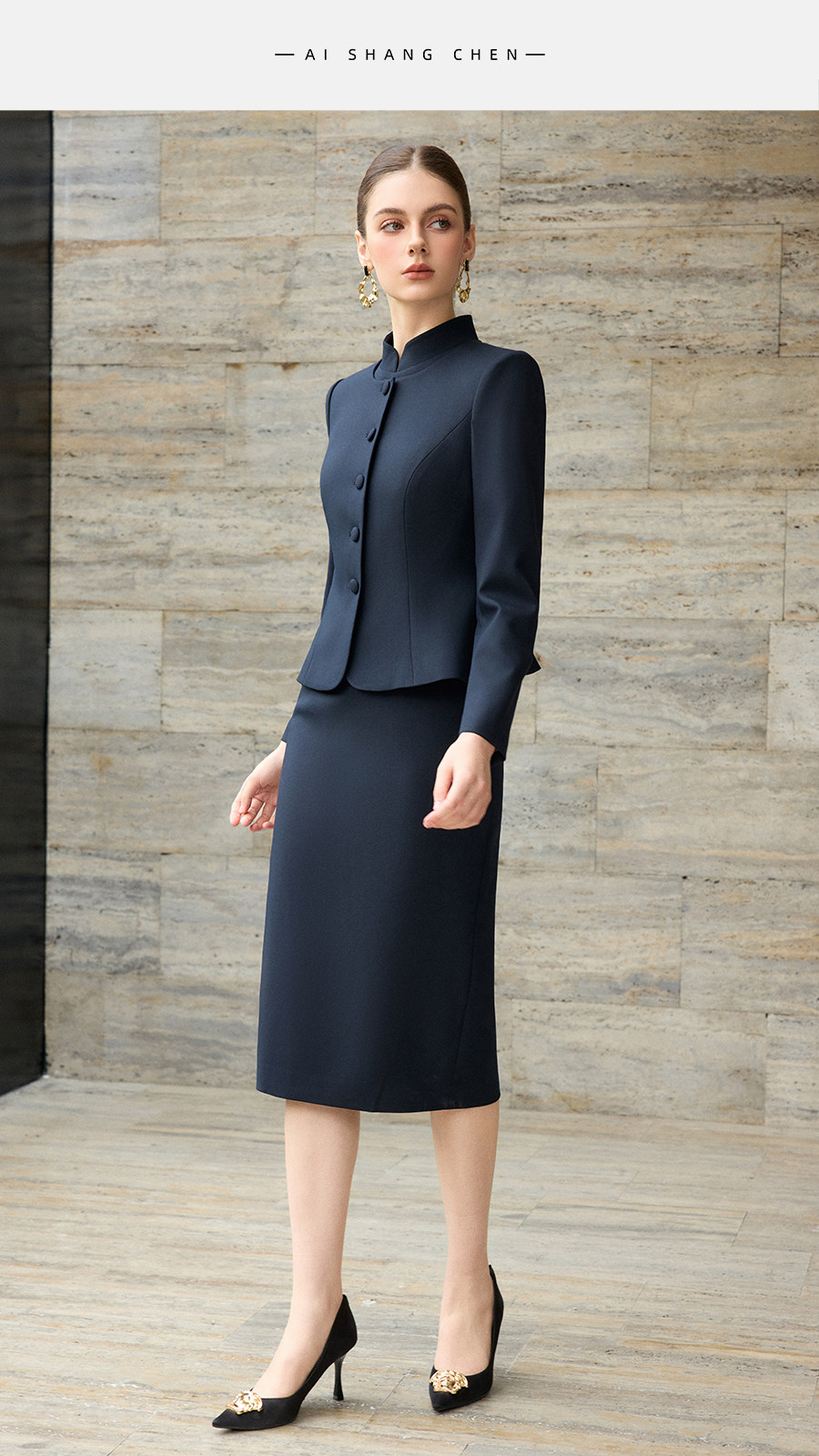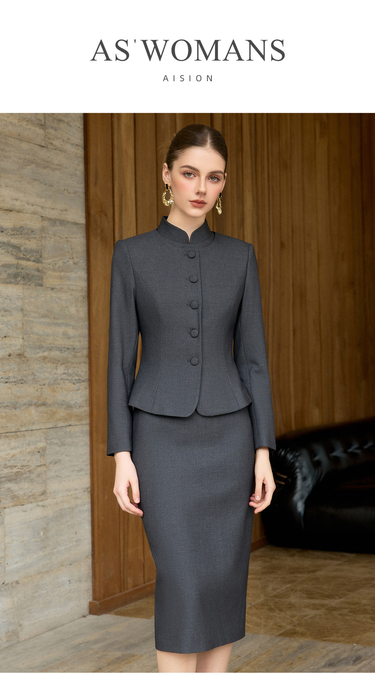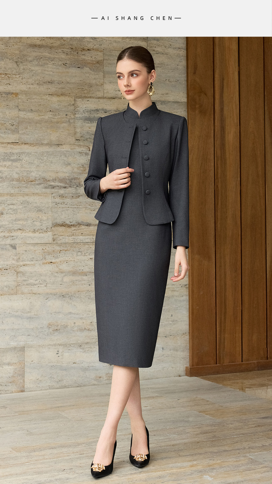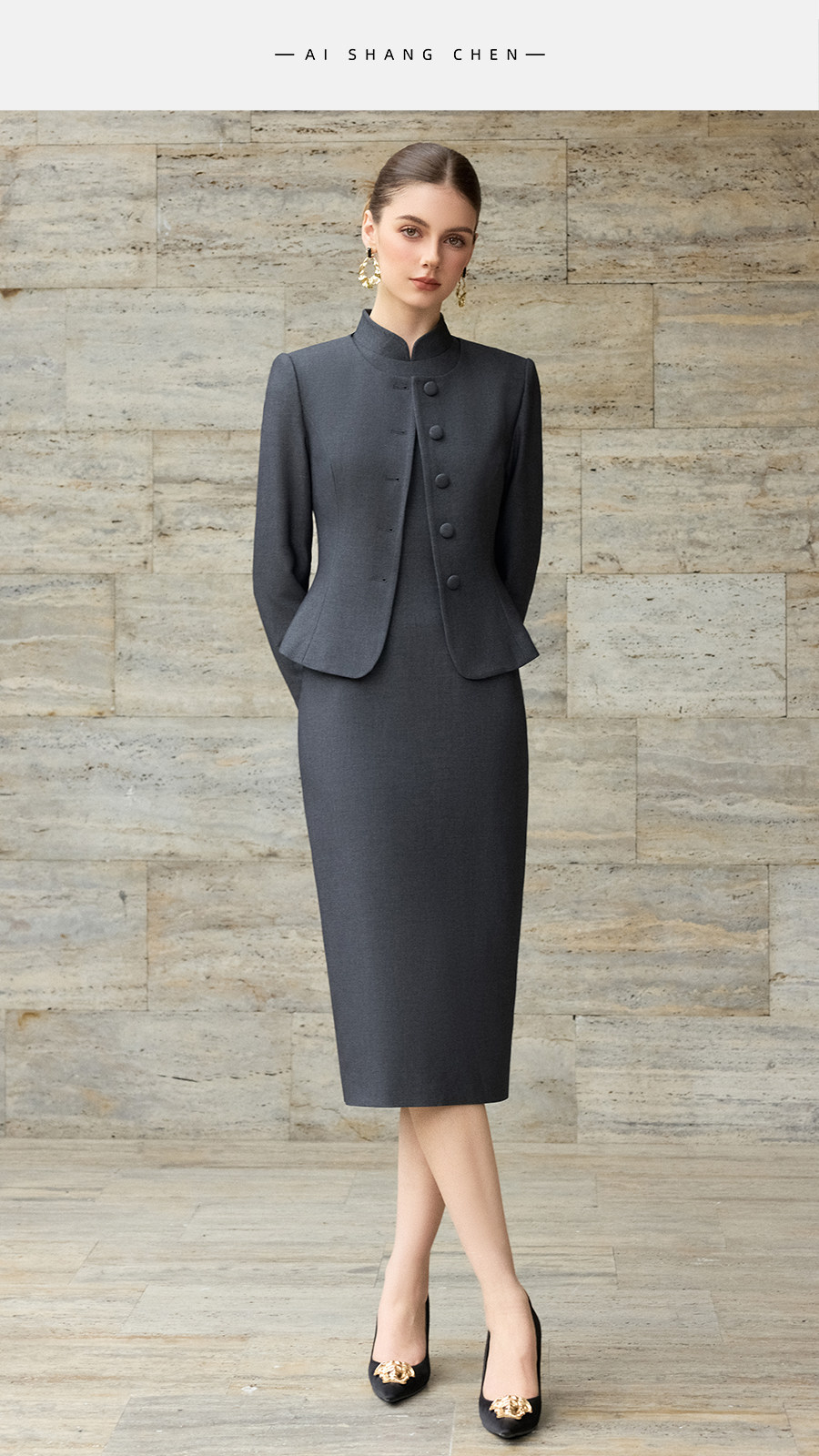 艾尚臣新中式旗袍立领西装套裙商务风套装女两件套高级感气质正装