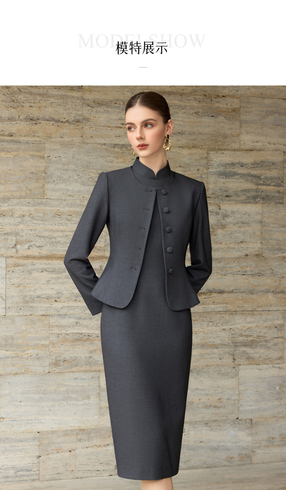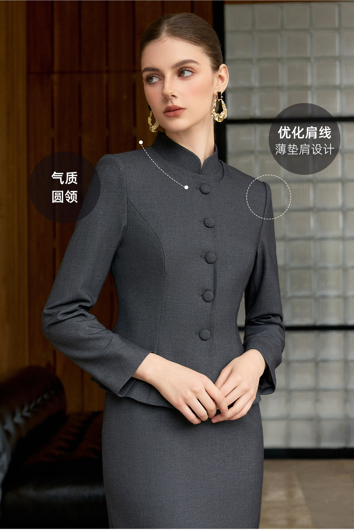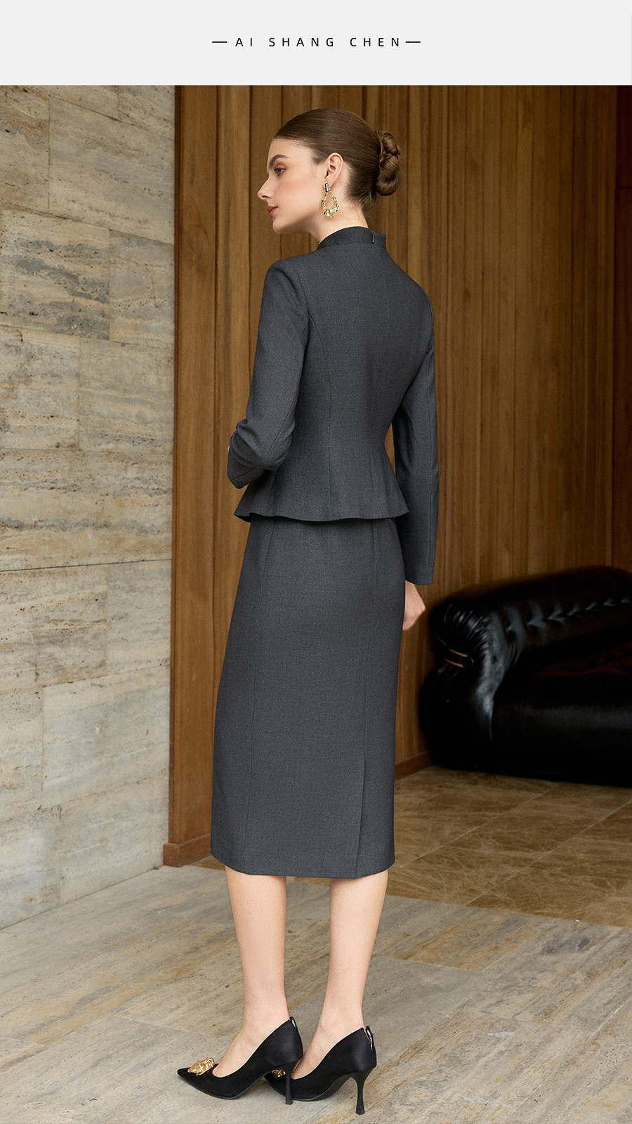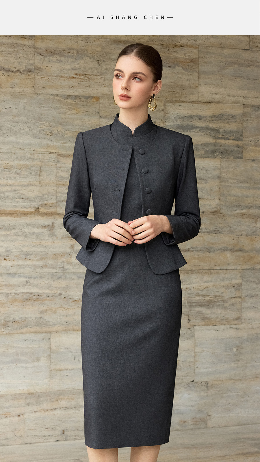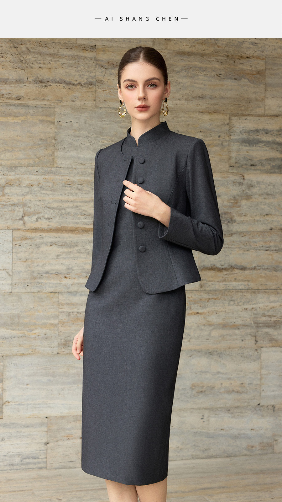 艾尚臣新中式旗袍立领西装套裙商务风套装女两件套高级感气质正装