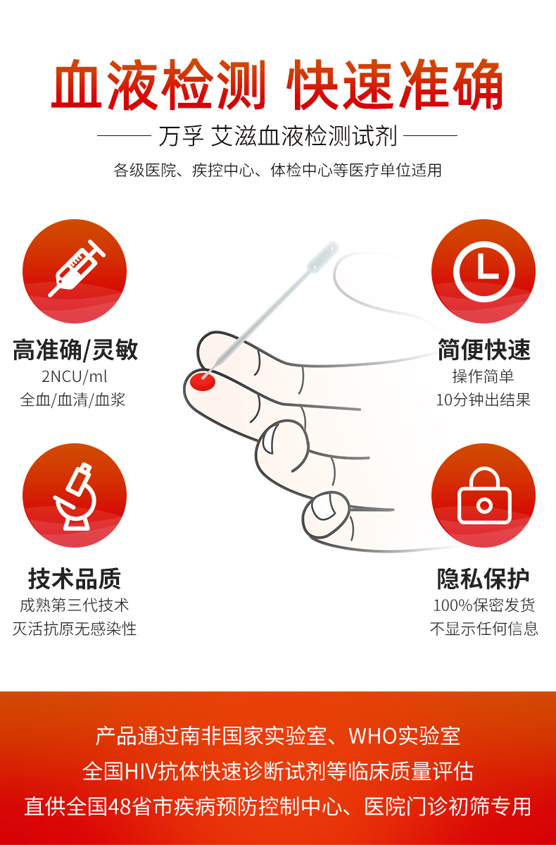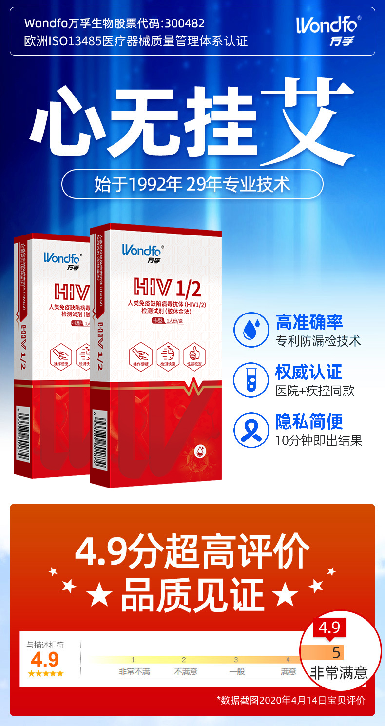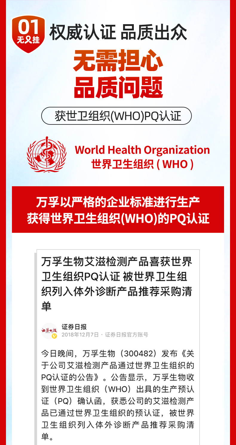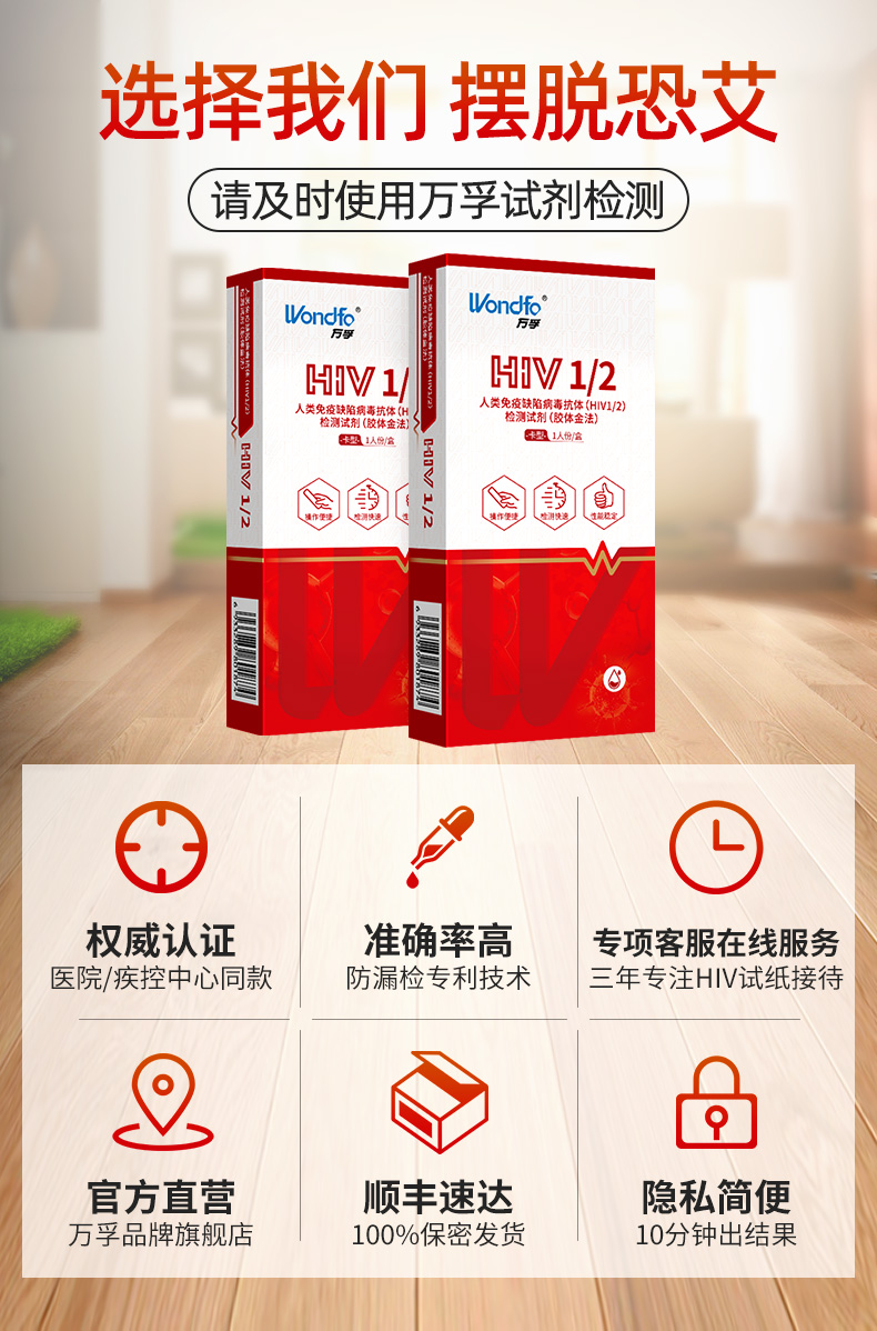 万孚艾滋病检测试纸自检自测hiv血液唾液mei毒试剂盒xing病正品三代