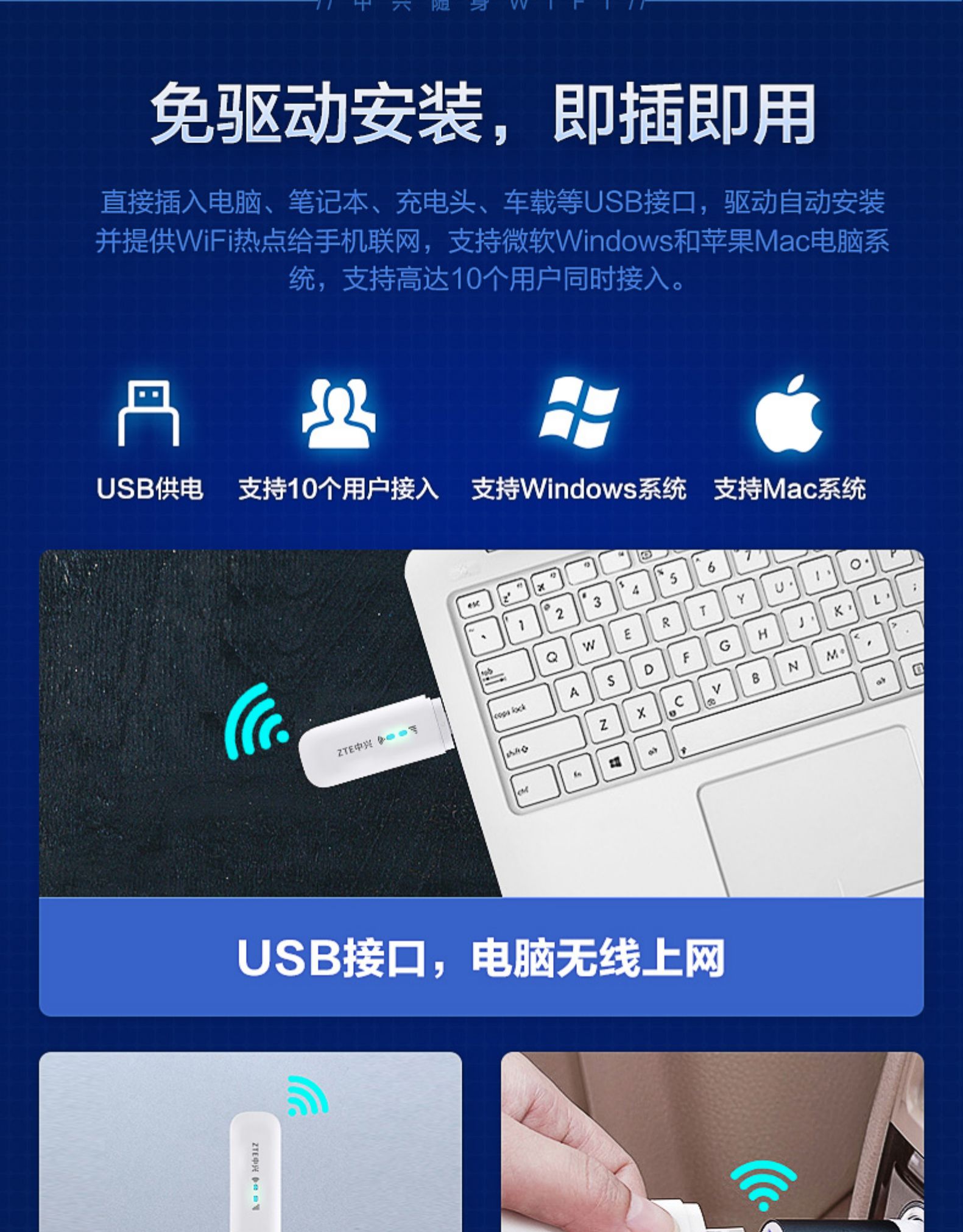 4g无线随身移动wifi上网卡USB接口不限速宽带笔记本便携卡托