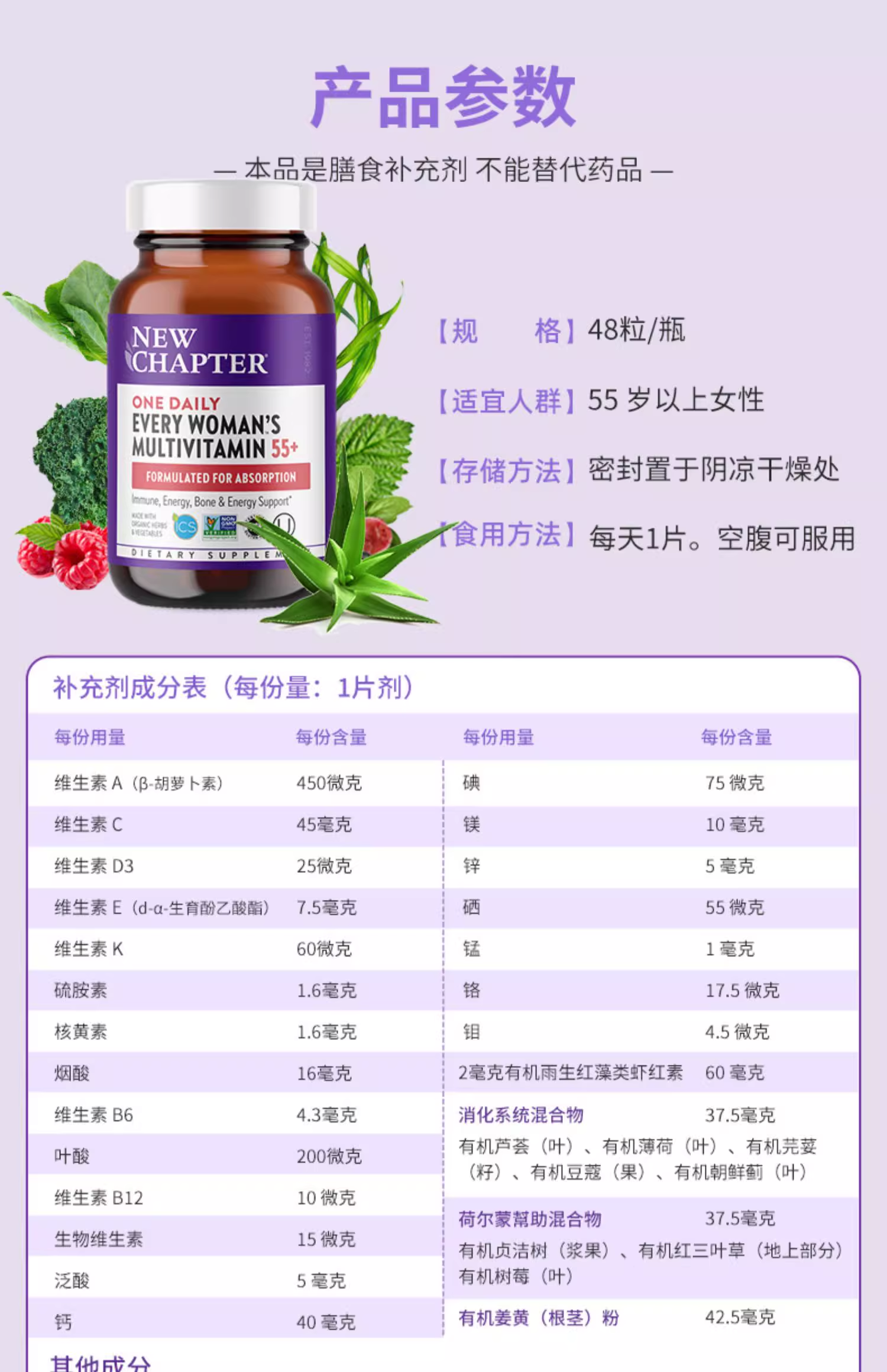 【临期 2026年3月】New 55+女性维生素48粒| Every Woman's One Daily 55+ 48'| New Chapter