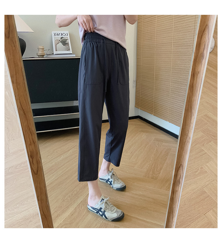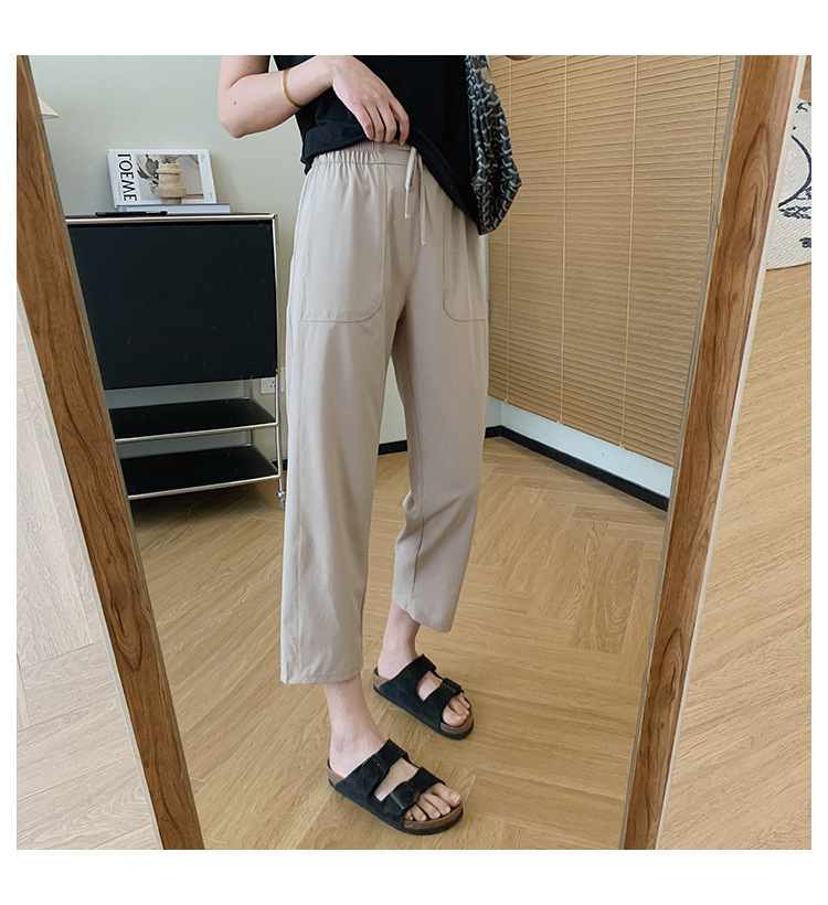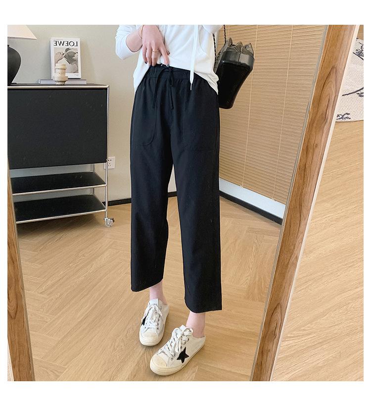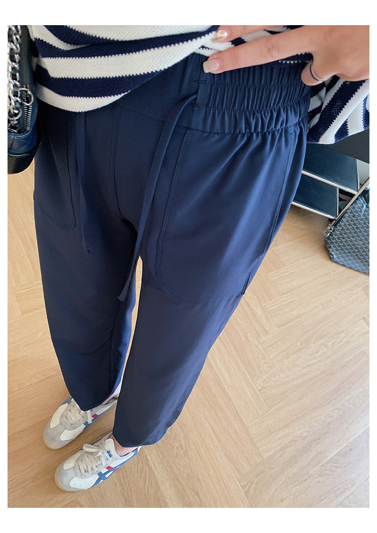 松紧中高腰+抽绳设计,不勒腰身,不易翻扭