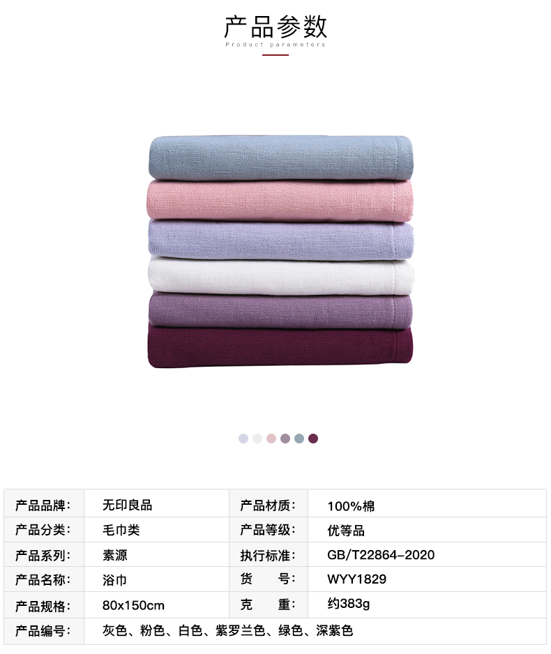 原野系列方面浴套装方巾面巾浴巾三件套 无印良品