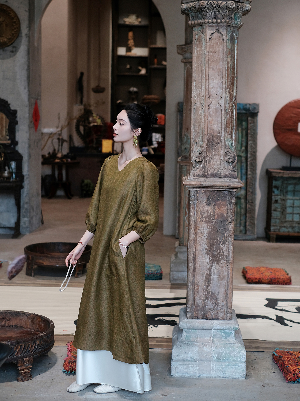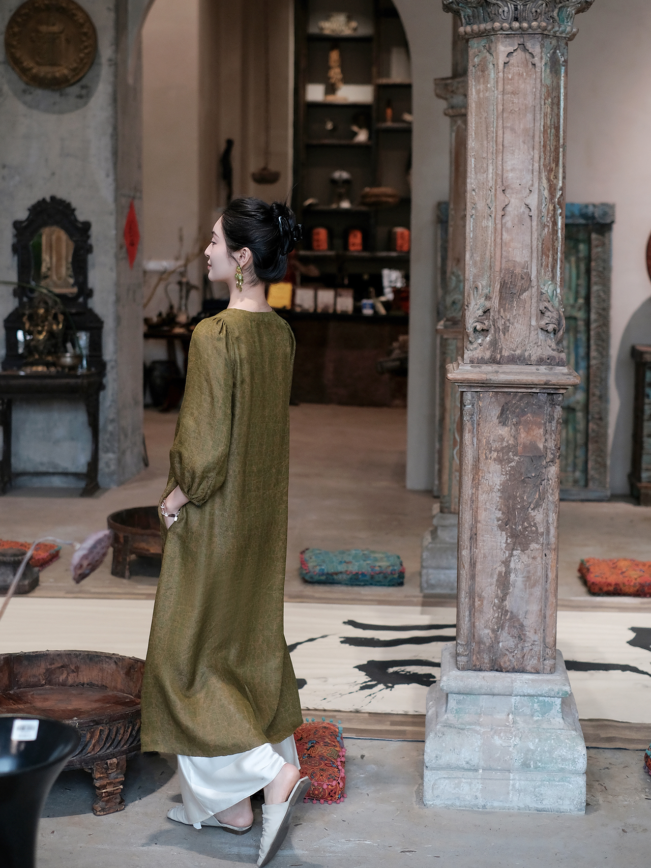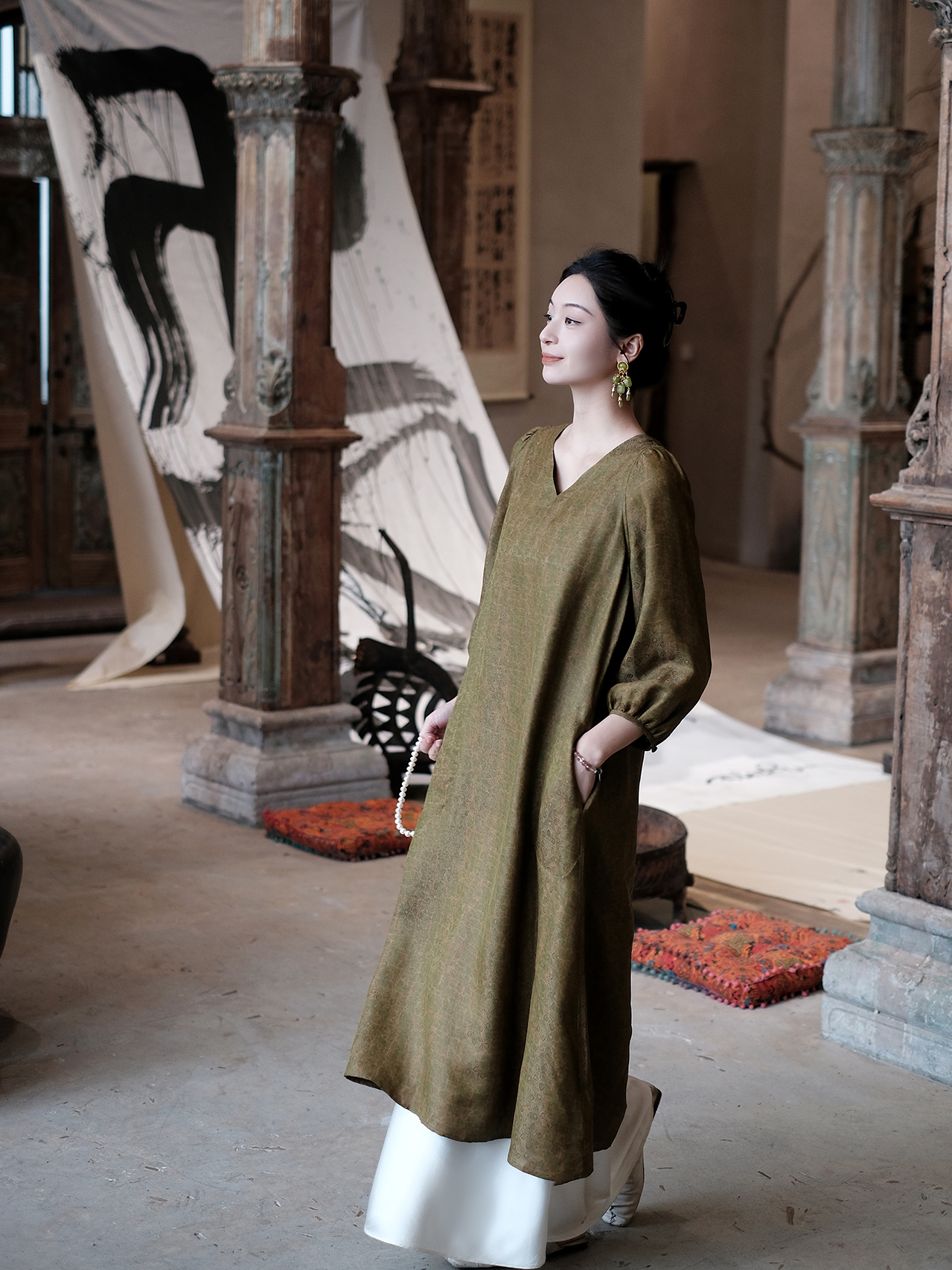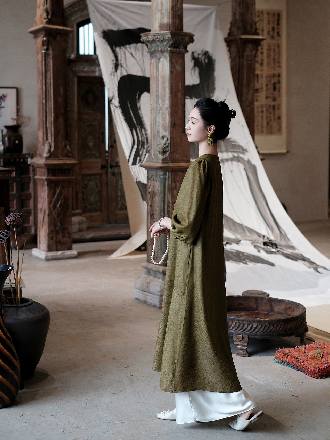 盛唐婧 |真丝提花罗团簇锦花宽松连衣裙