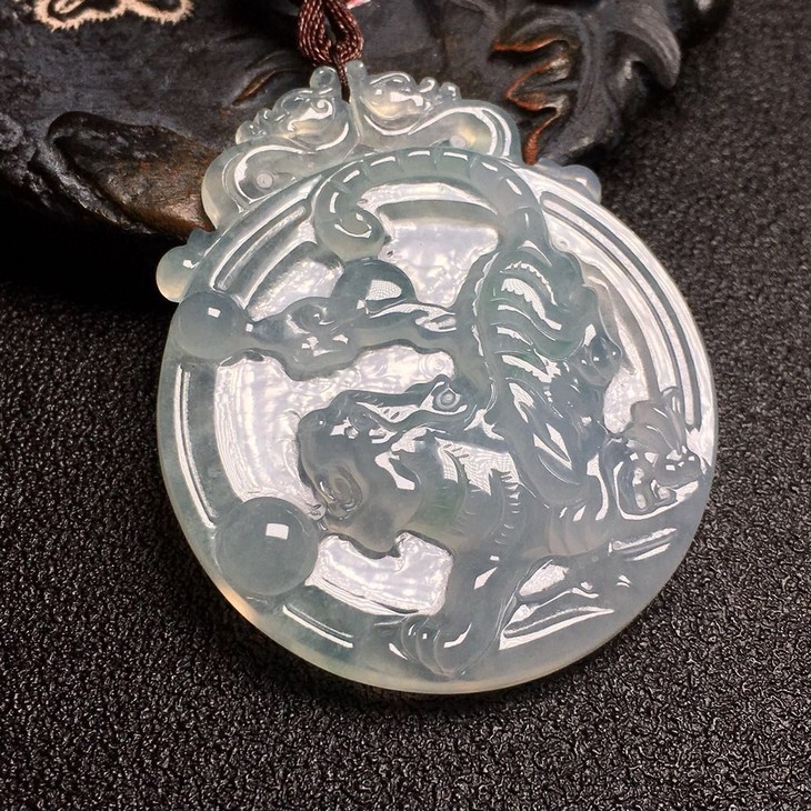 【60601】翡翠冰种白虎 ,水色盈盈,玉质细腻,猛虎威武凛风,霸气十足,寓意虎虎生威!裸石尺寸:51.8*42.3*7mm,结缘价3580