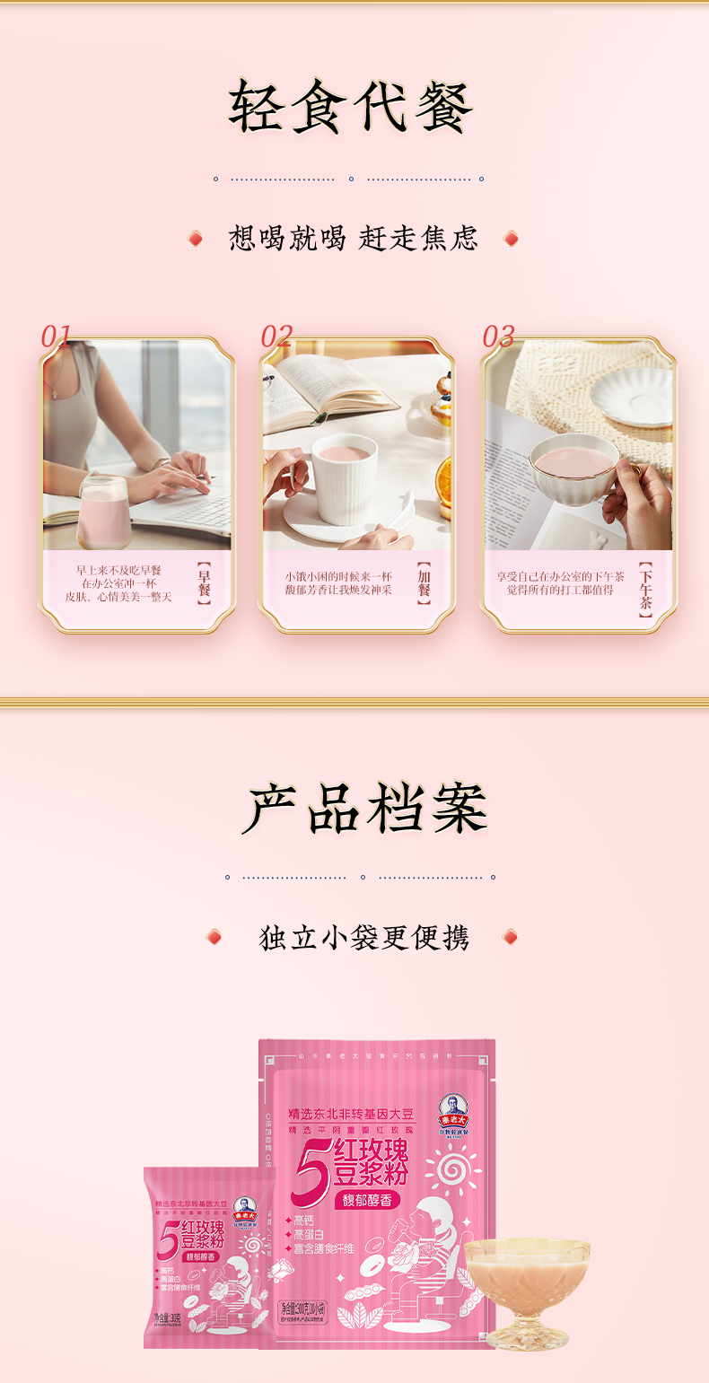 秦老太5红玫瑰豆浆粉爱的特调·玫颜粉黛300g/袋(细腻轻甜·高钙高蛋白)