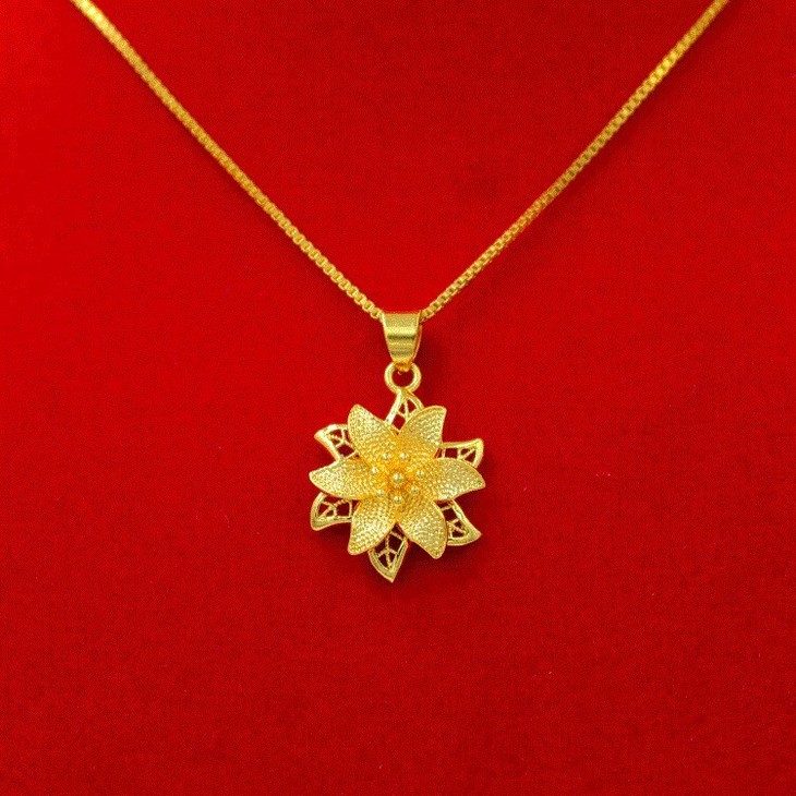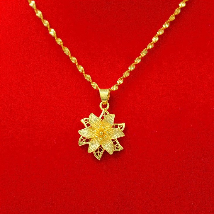 【项链】。沙金心形吊坠套链女款久不掉色镀金锁骨链仿真金假黄金项链女