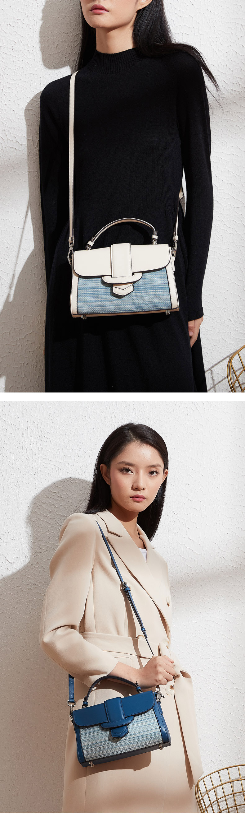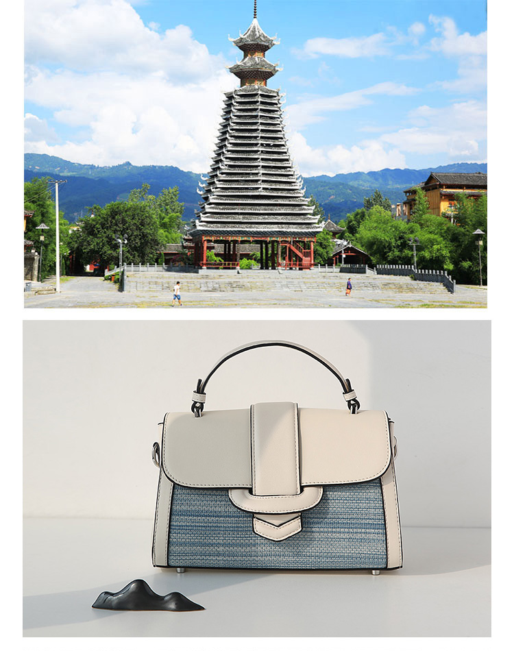 饮水鸟非遗侗族手织布囧囧有神百搭包 手提斜挎包 棉囧月白