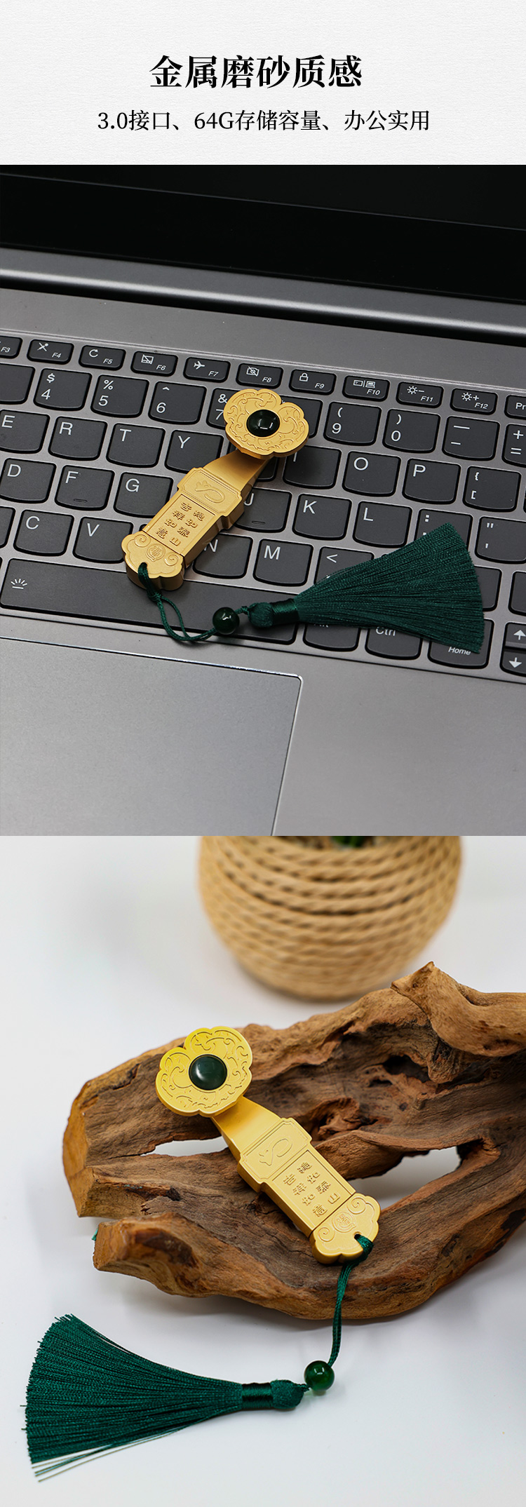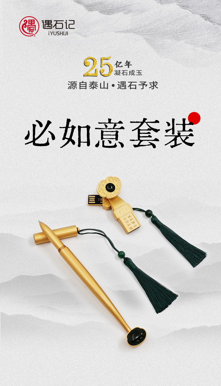 泰山玉如意套装碧玉镶嵌u盘如意笔伴手礼礼盒