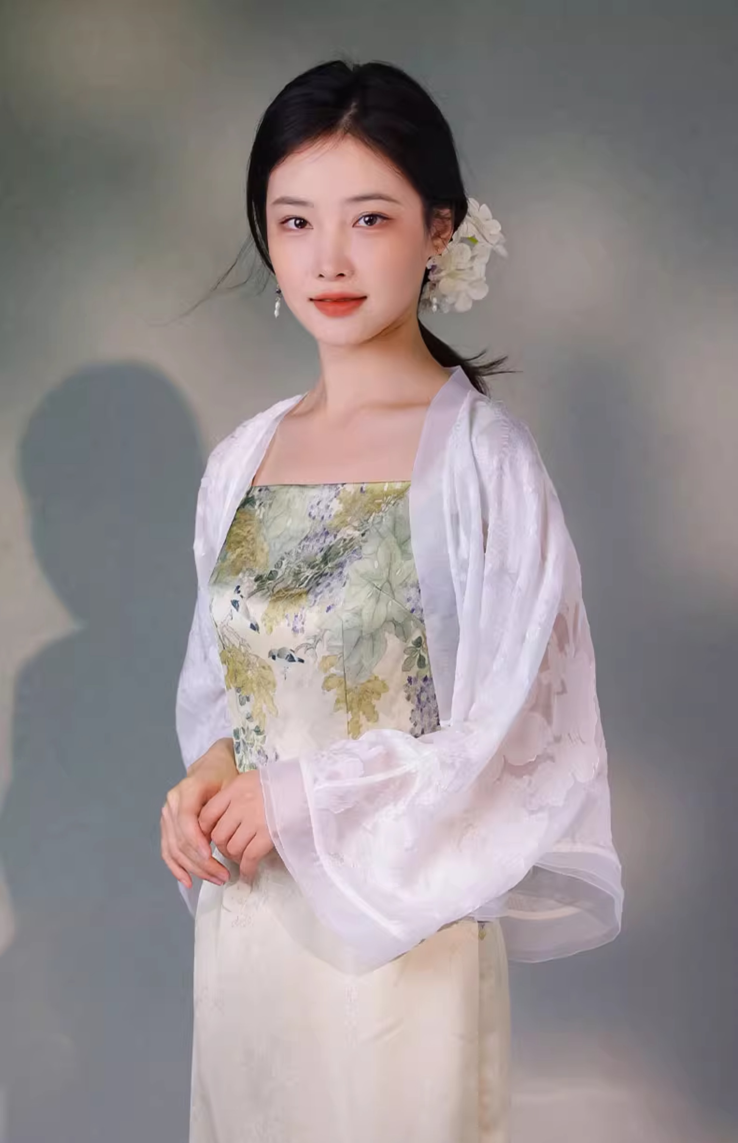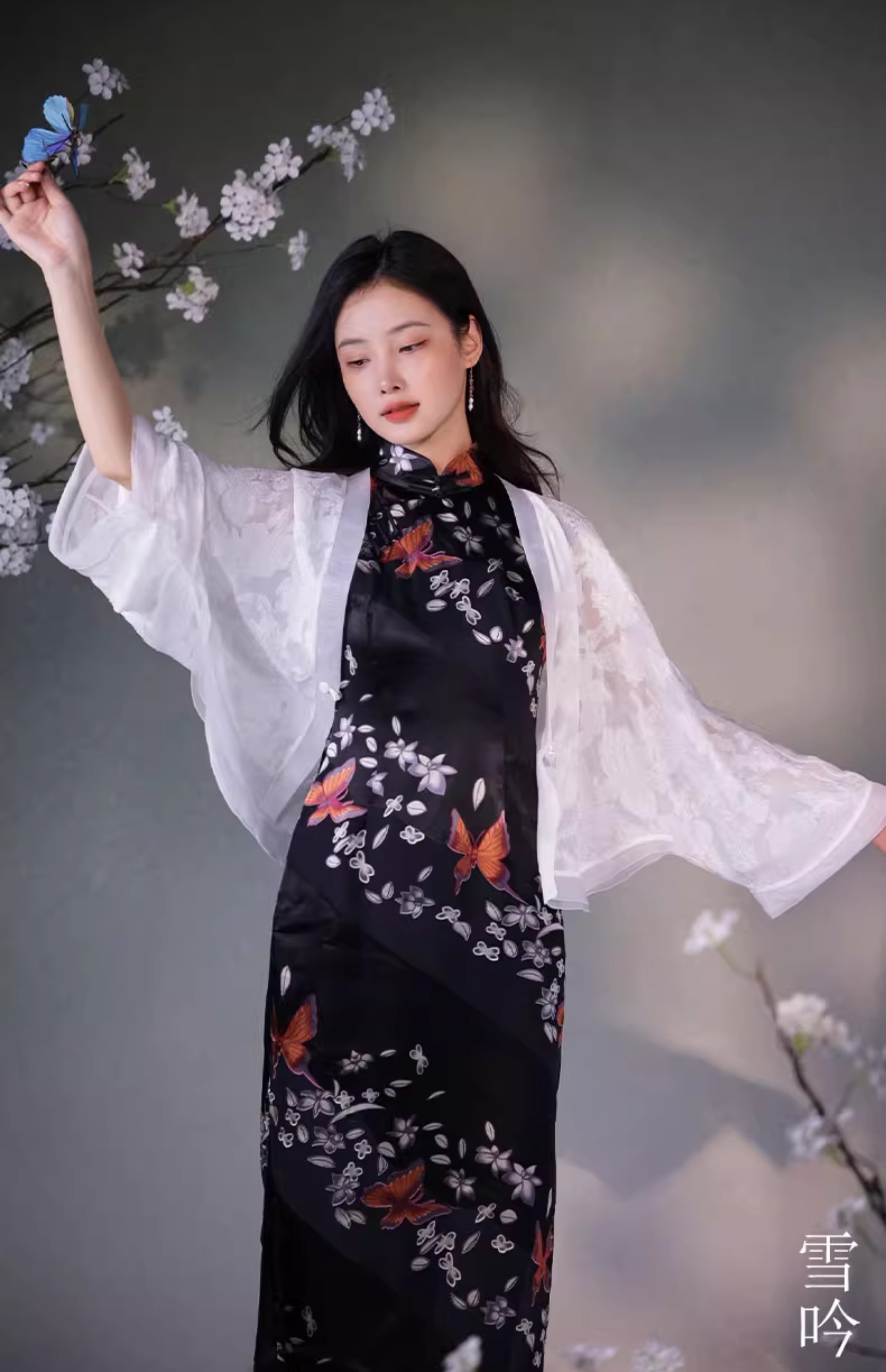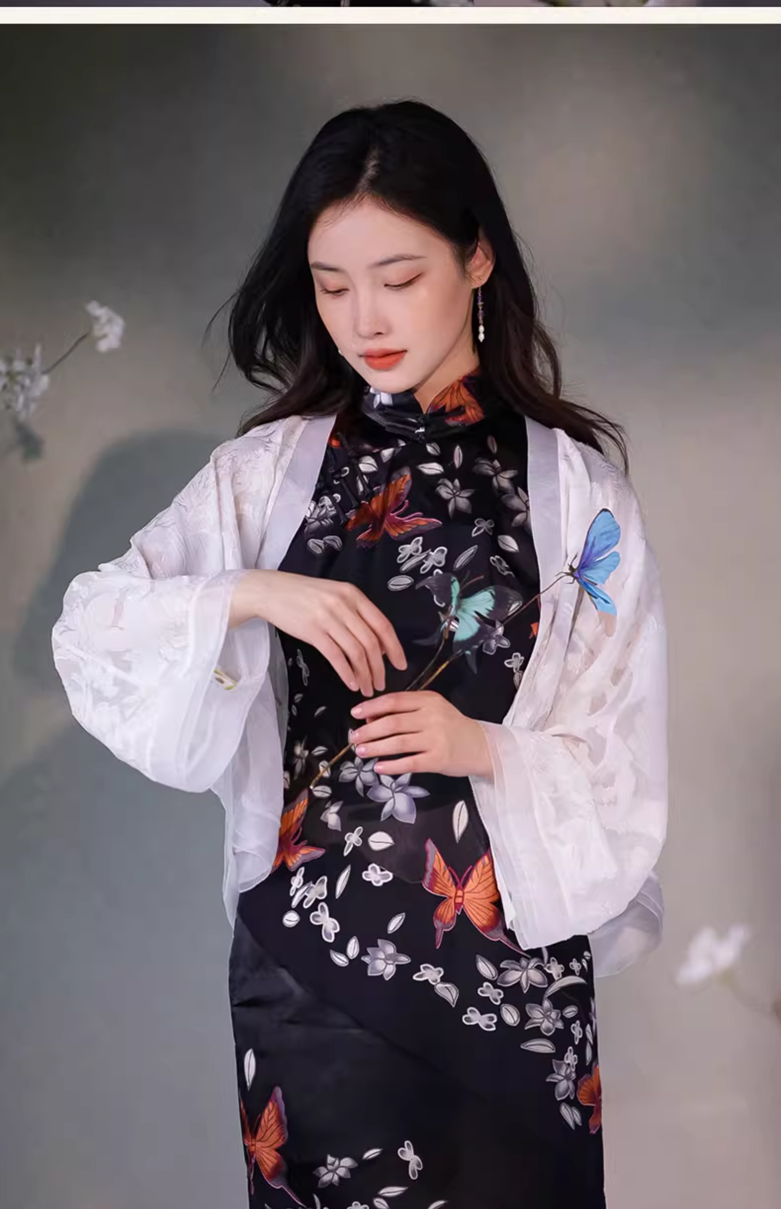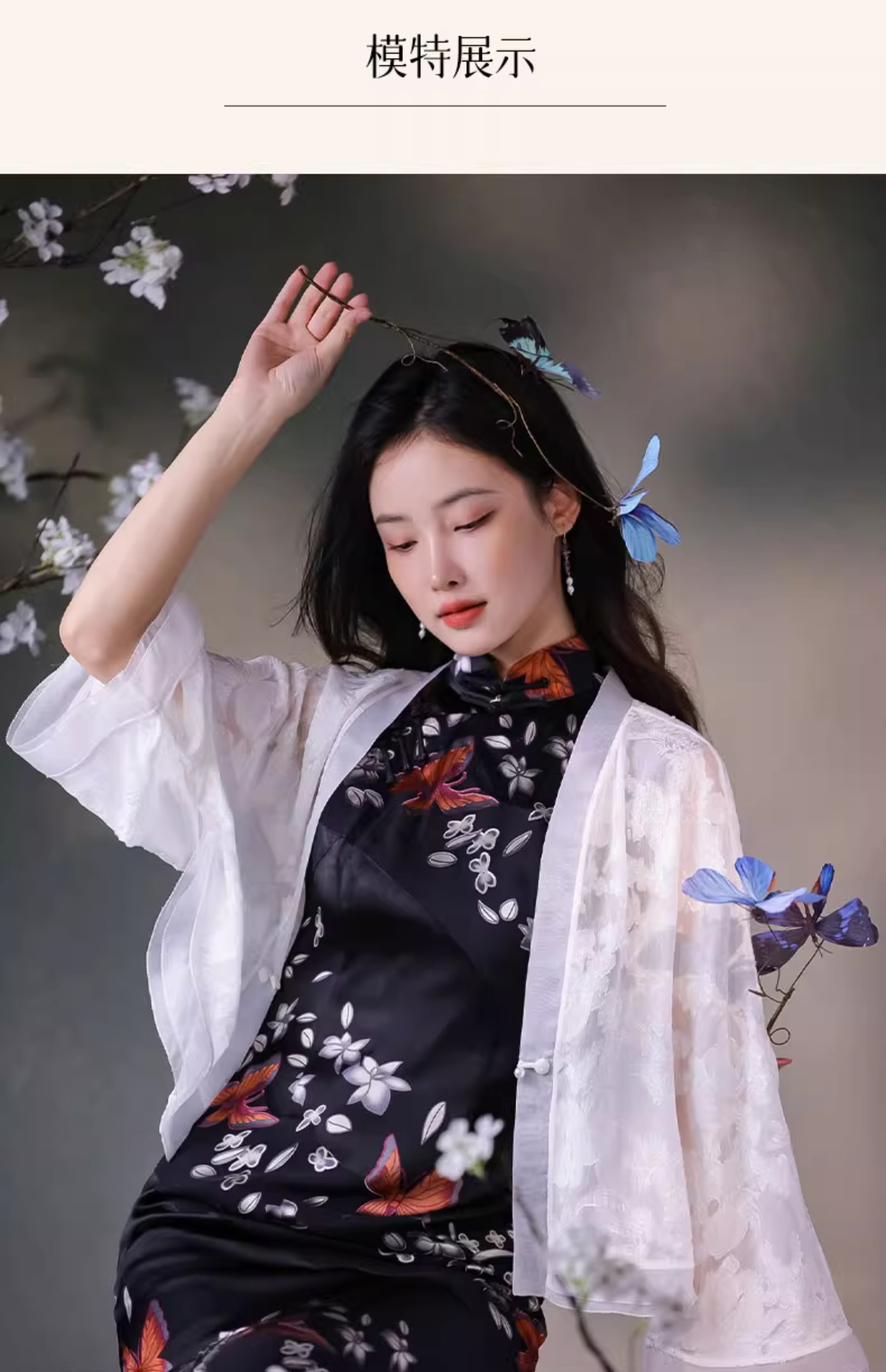 逸红颜雪吟2025夏新款仙美飘逸双层错落真丝剪花短外披防晒外套女