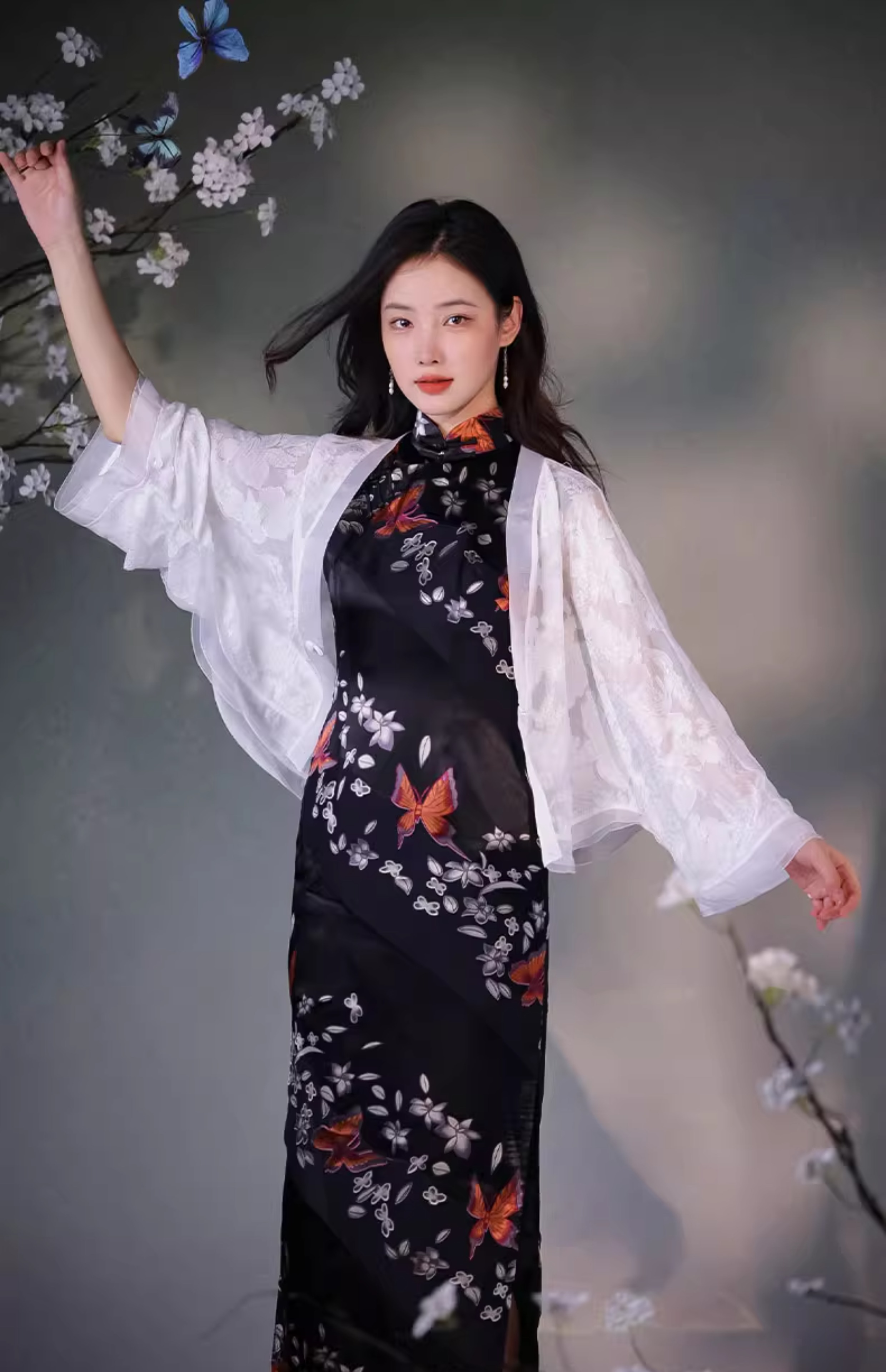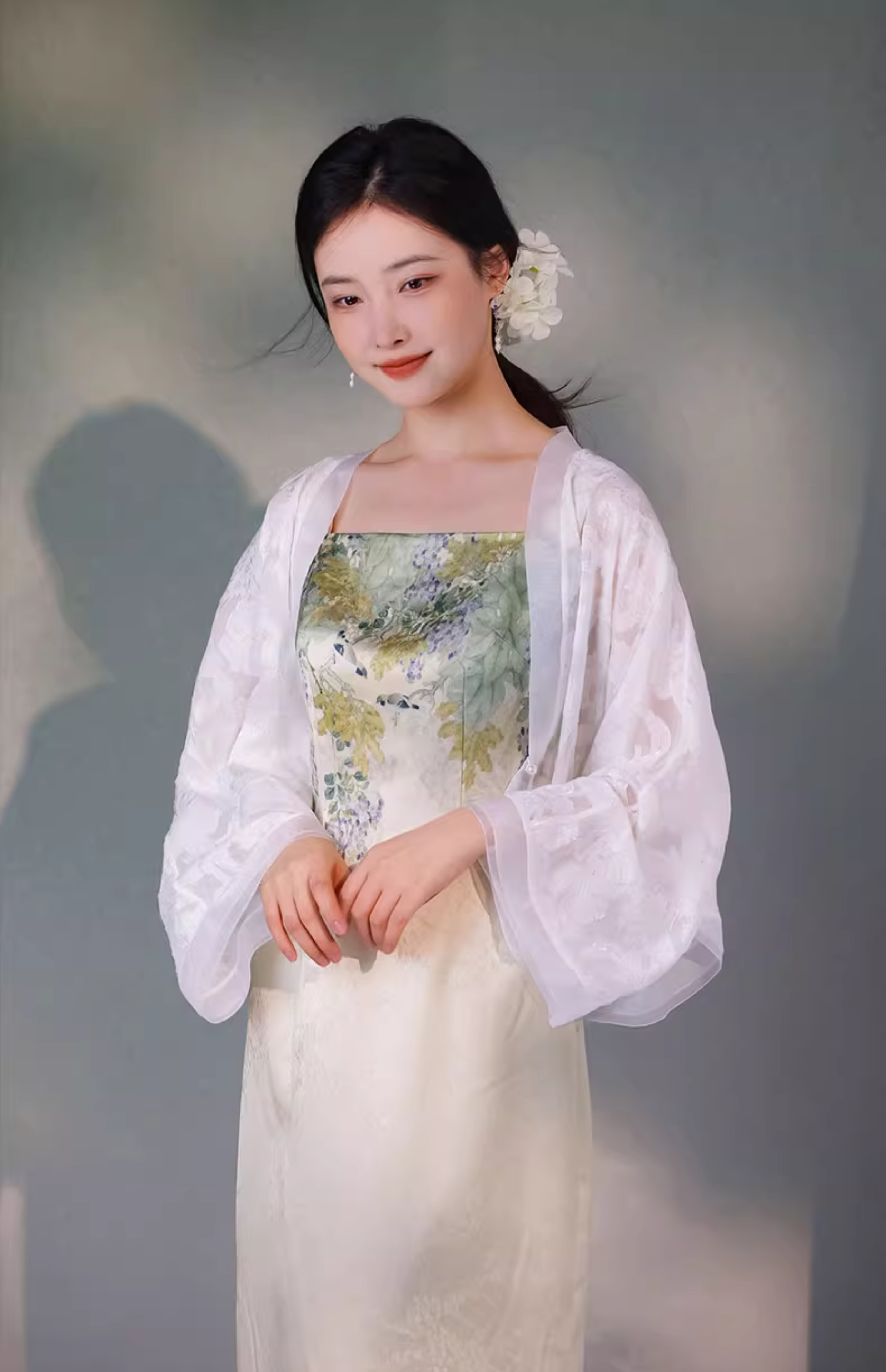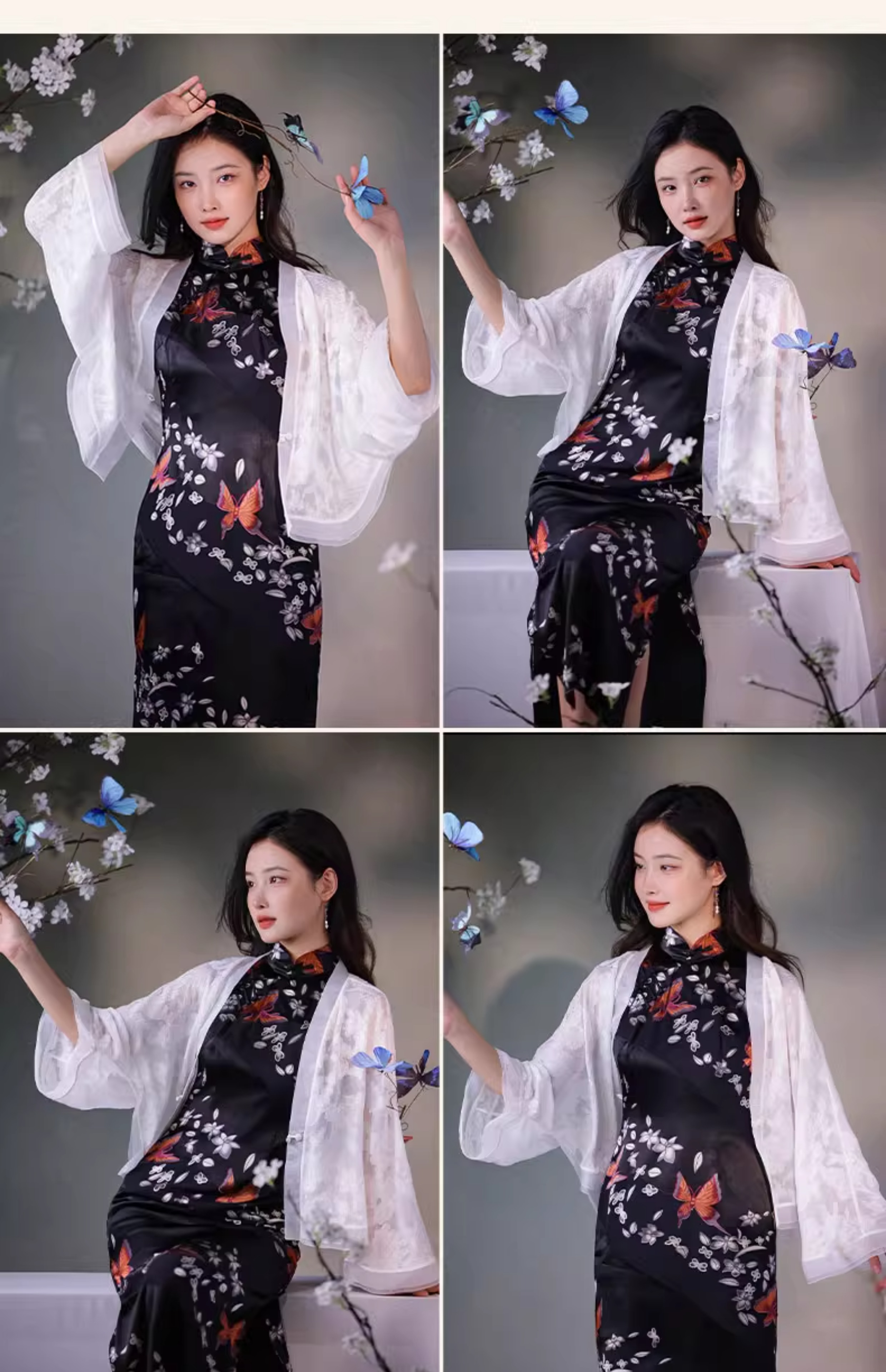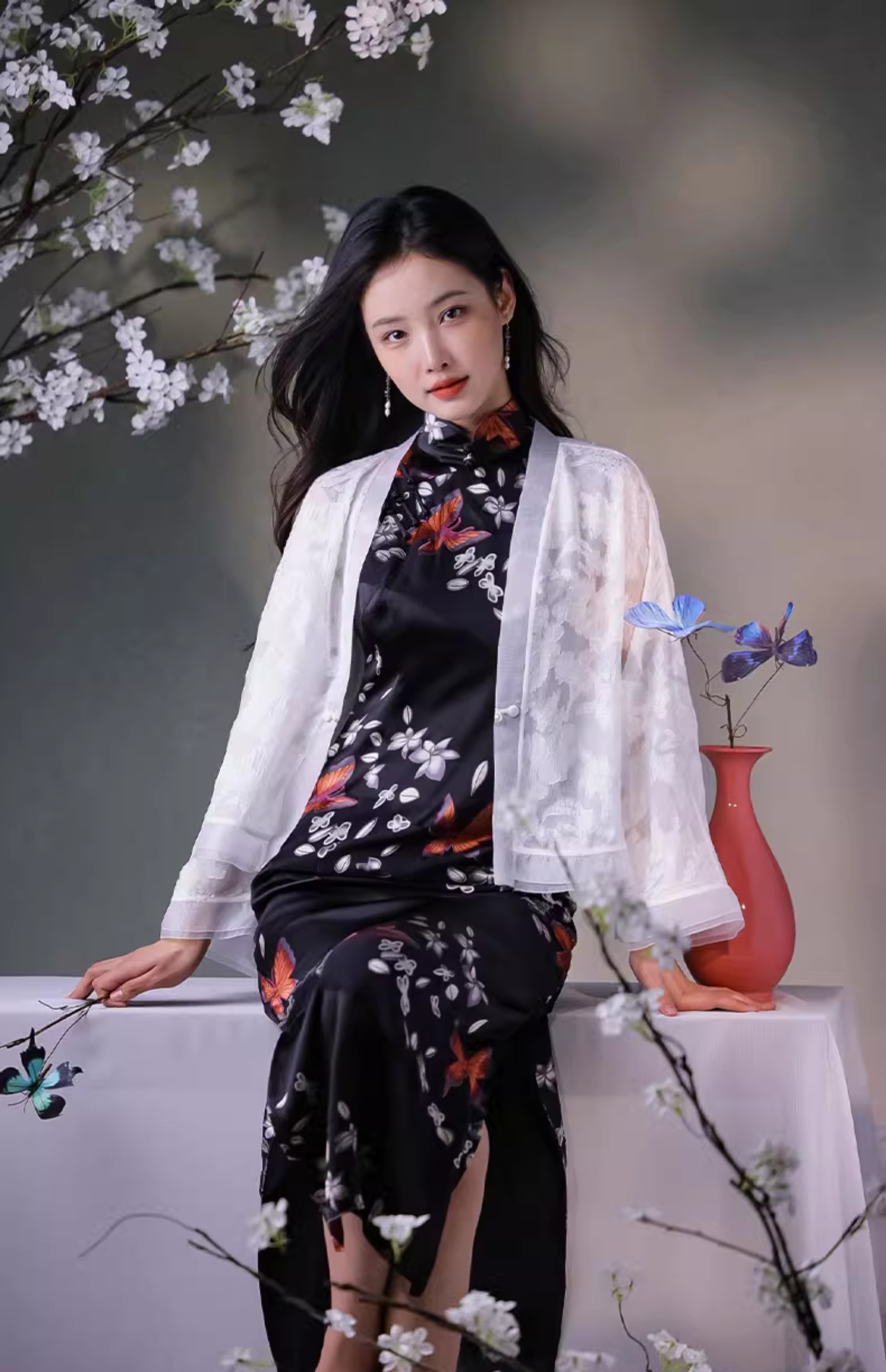 逸红颜雪吟2025夏新款仙美飘逸双层错落真丝剪花短外披防晒外套女