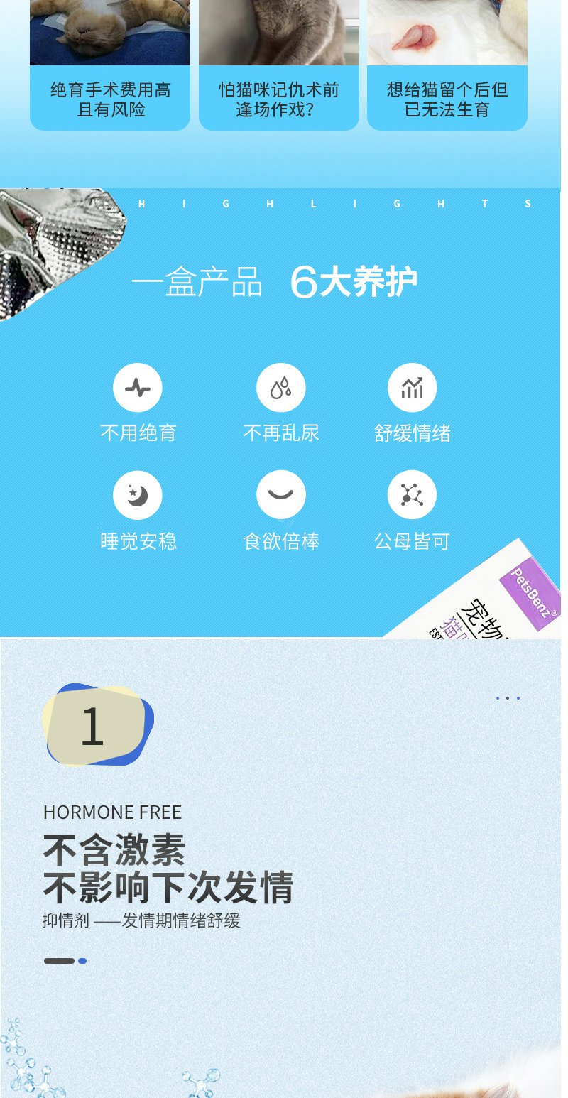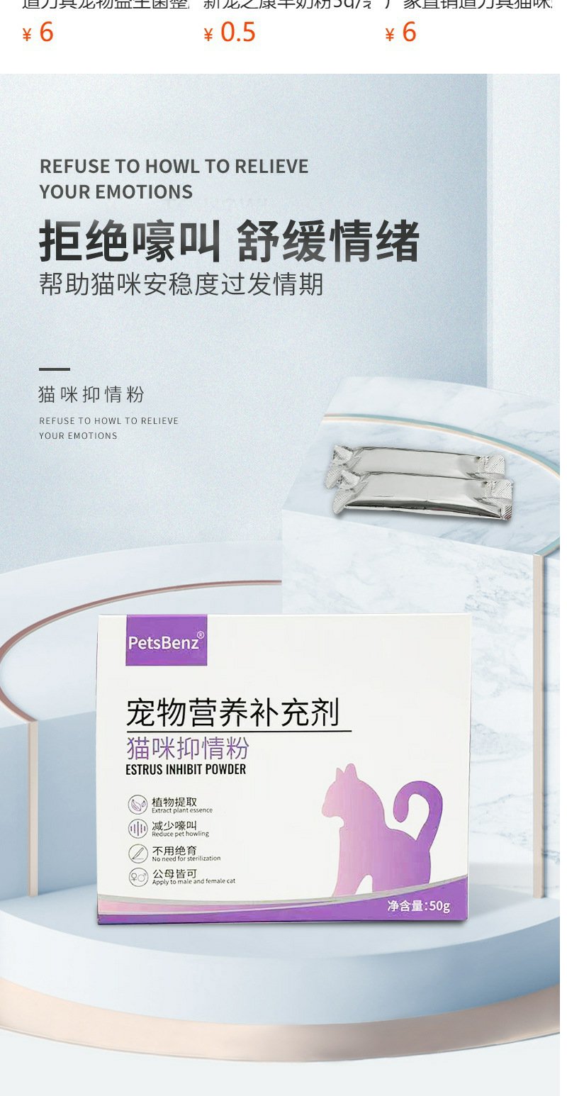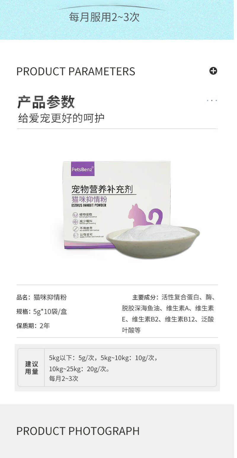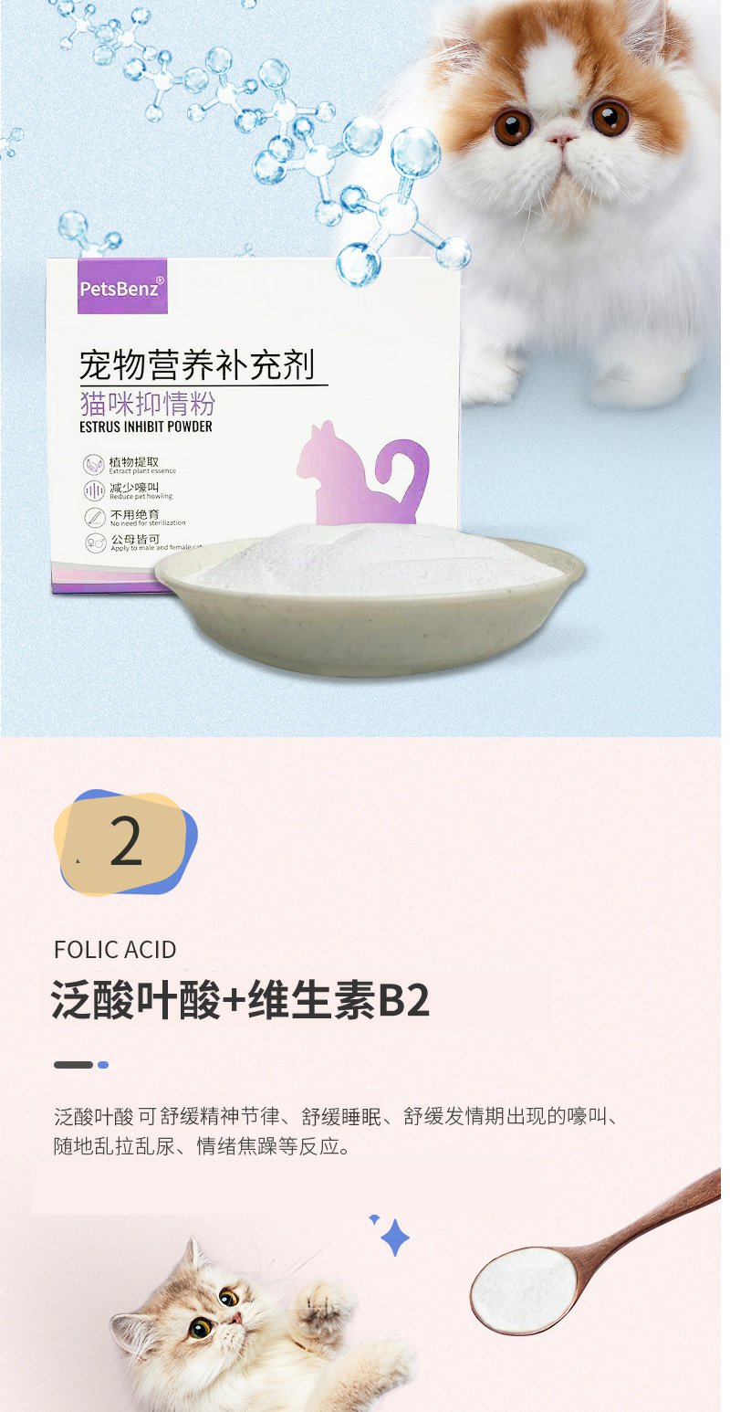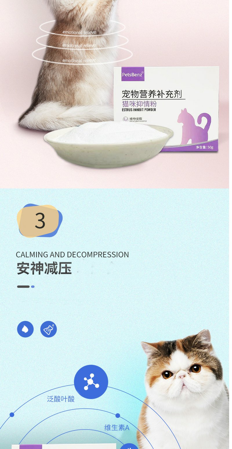 【猫咪抑情粉】PetsBenz发情期防猫叫舒缓情绪公母猫抑情营养补充剂50g
