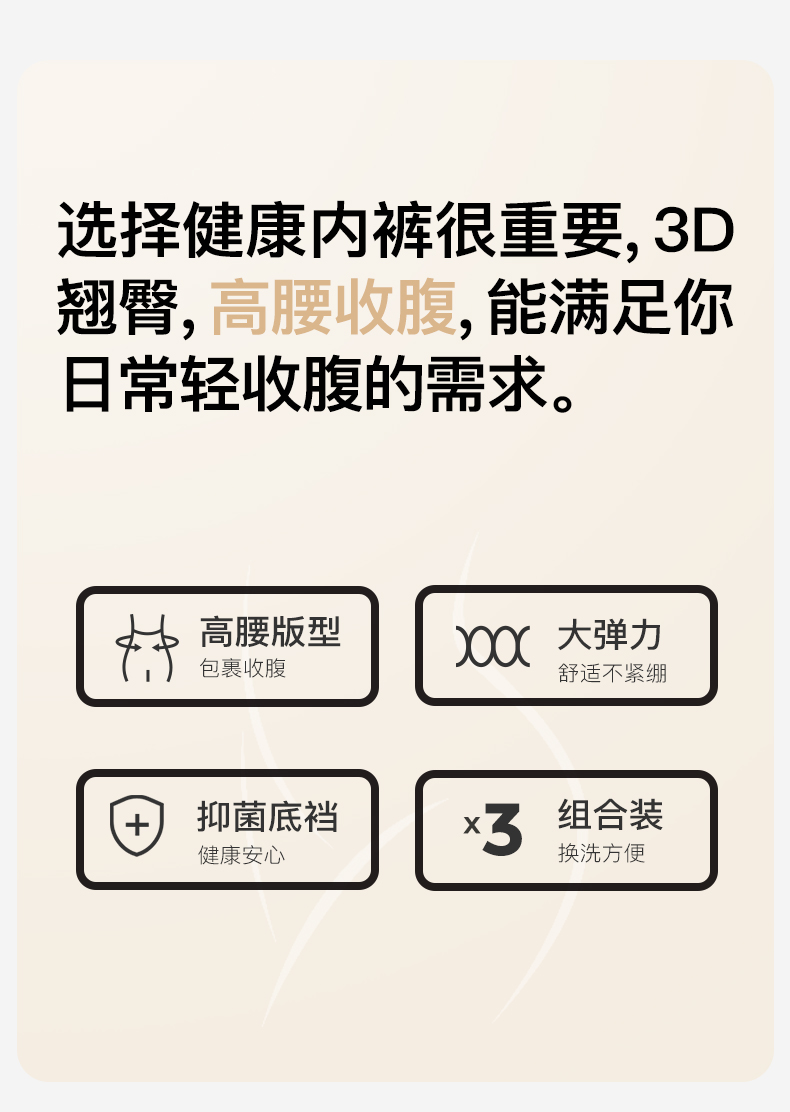 3条装梦芭蒂高腰收腹提臀内裤女抑菌养护裆三角女士短裤柠萌辰心