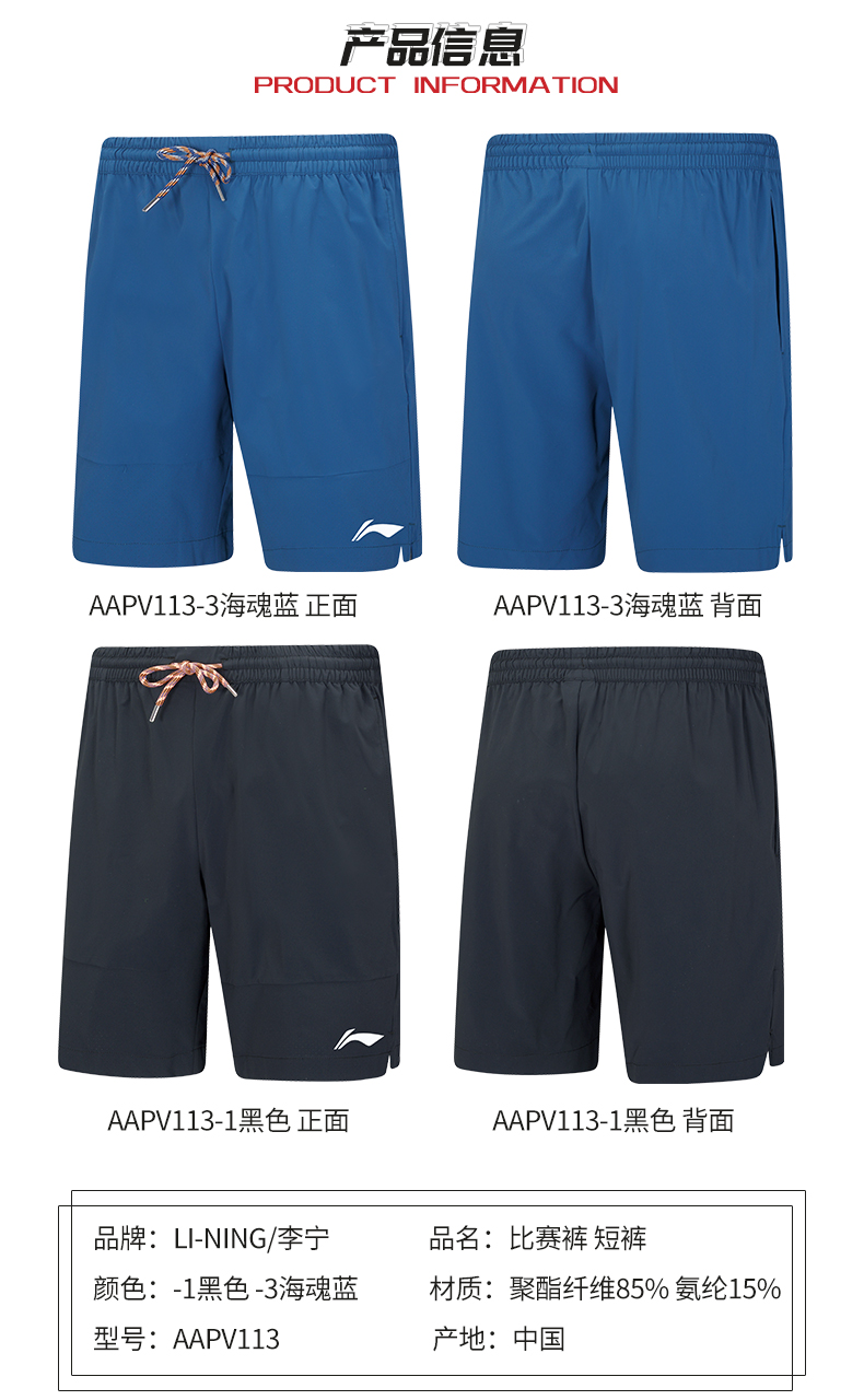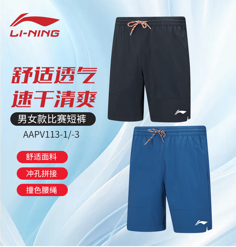 李宁新款LINING羽毛球服AAPV113男士短裤比赛短裤透气速干