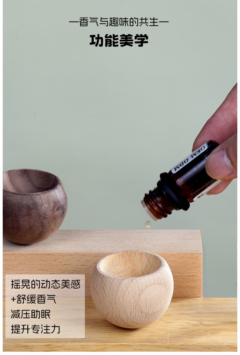 将喜欢的精油10滴以上滴入扩香木。精油快速渗入木瓶,然后香气慢慢扩散出来,充满周围空间。将扩香木放在房间、书桌、办公桌、车里等任何位置,或放口袋、包包随身携带,随时拿出来嗅闻。