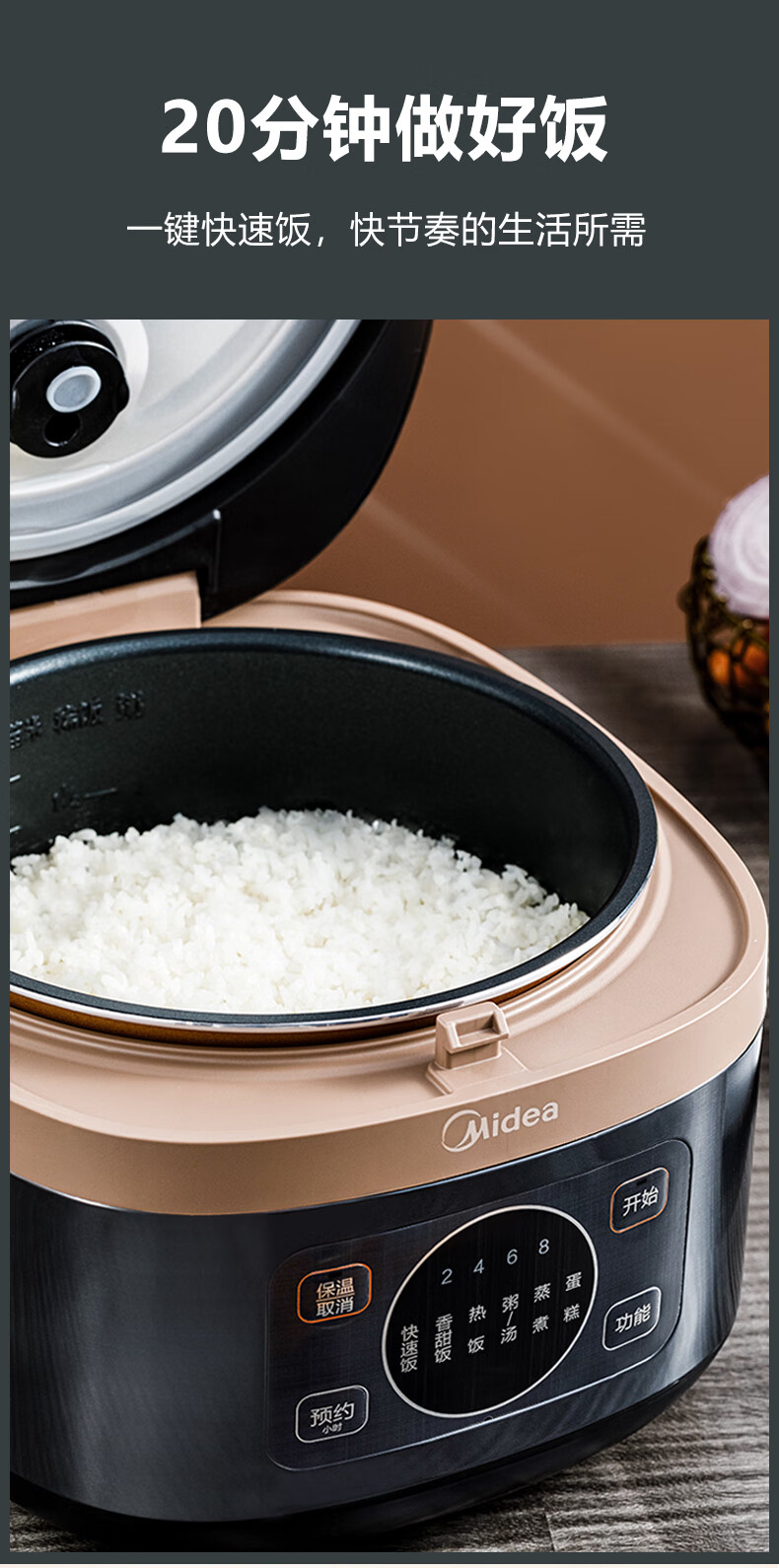 美的(Midea)电饭煲家用智能定时预约MB-FB40XQD61 4L大容量