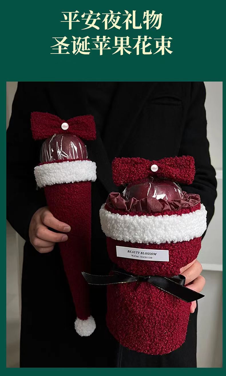 【冰淇淋苹果花束材料包】平安夜礼物圣诞苹果花束,羊羔毛毛绒布鲜花包装,平安果花束diy材料包圣诞节礼物送女友QQ新年礼盒年货礼盒
