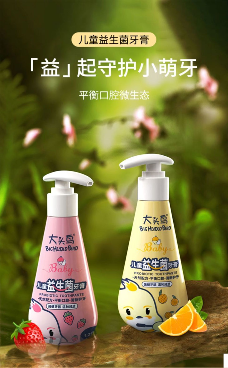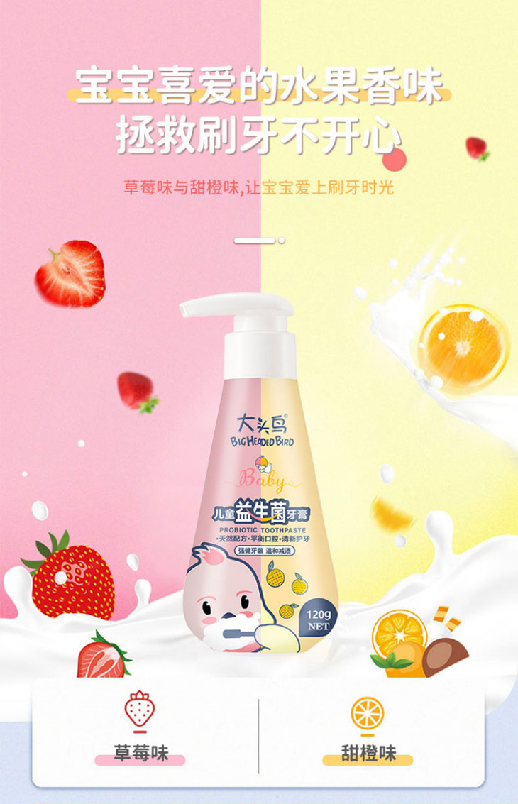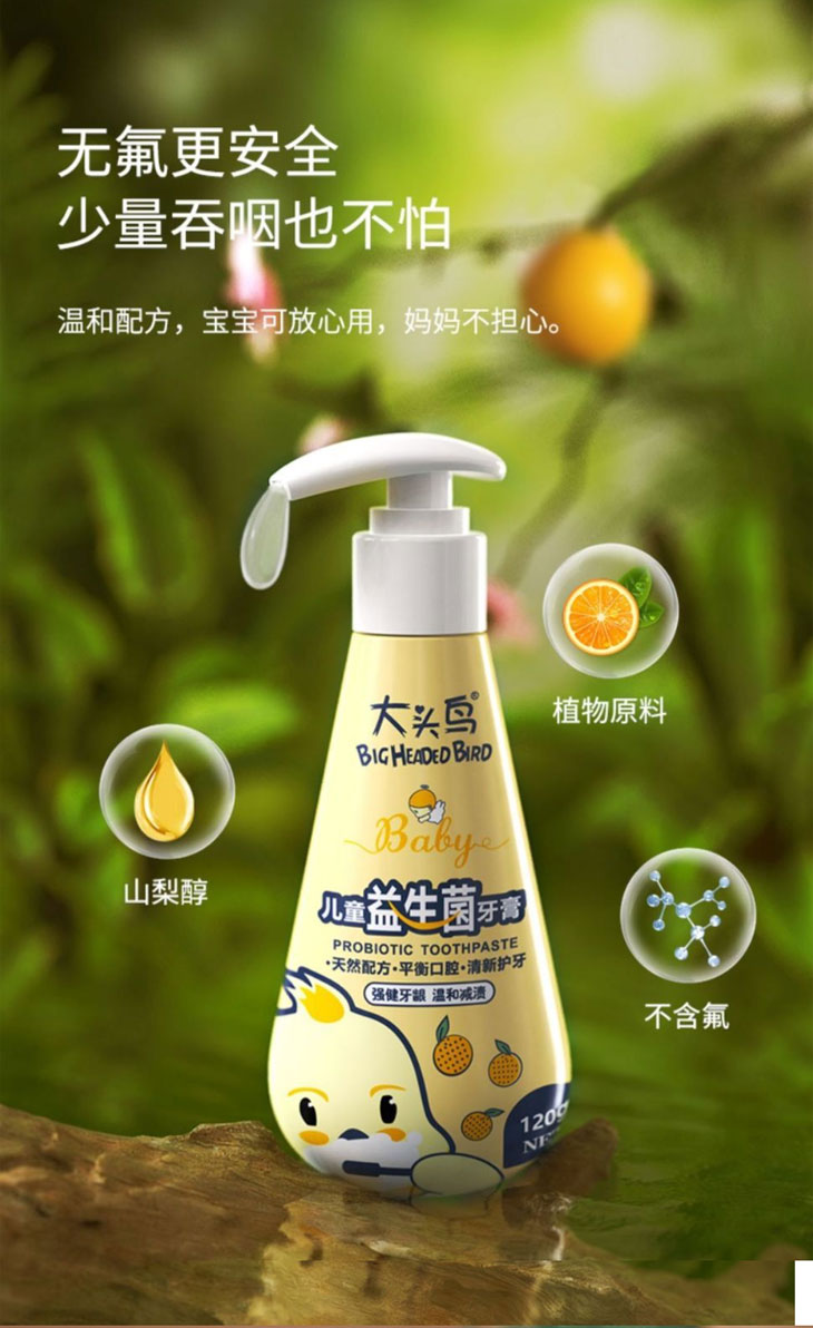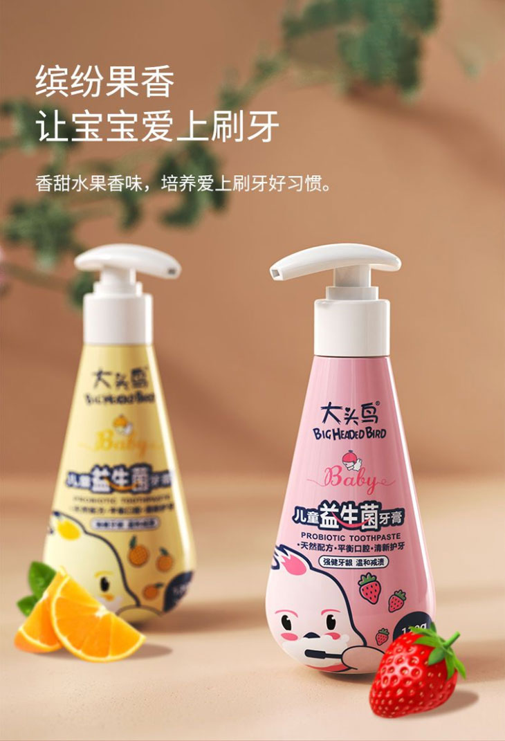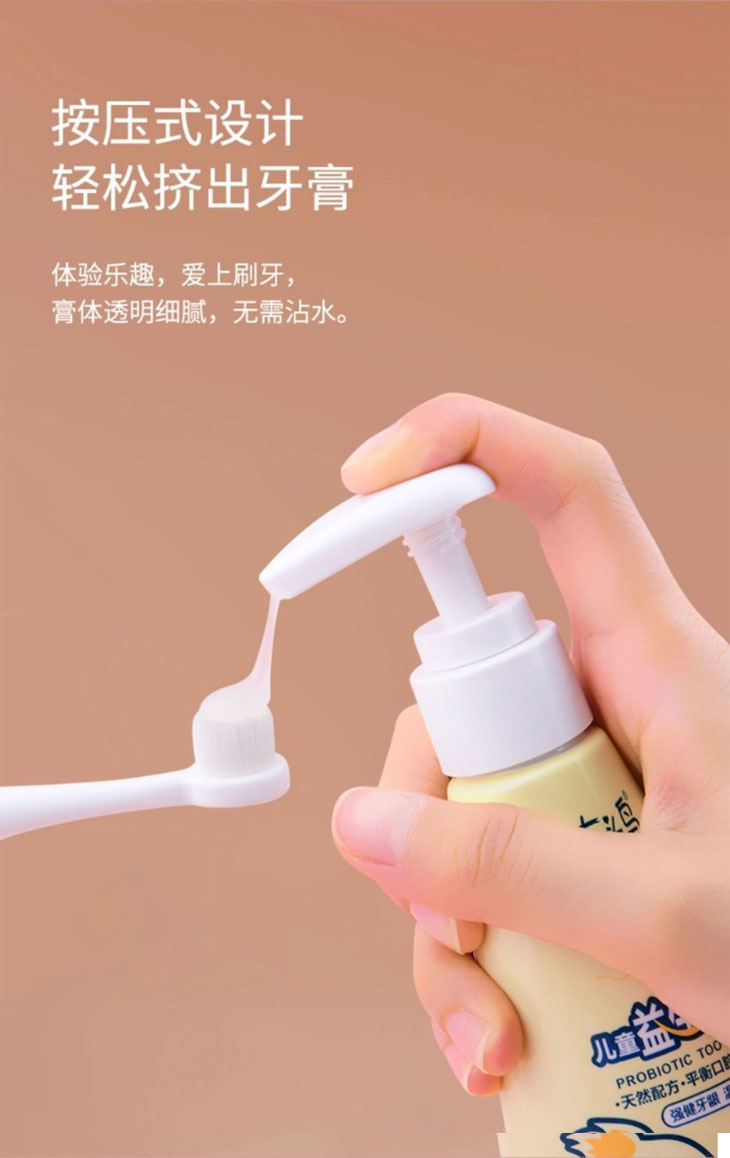 儿童牙膏 益生菌按压式儿童牙膏无氟防蛀牙120g换牙期防蛀1-3-6-12