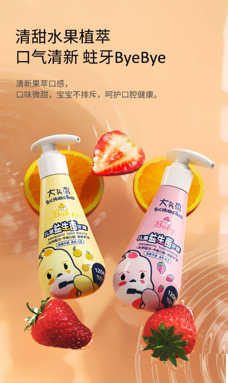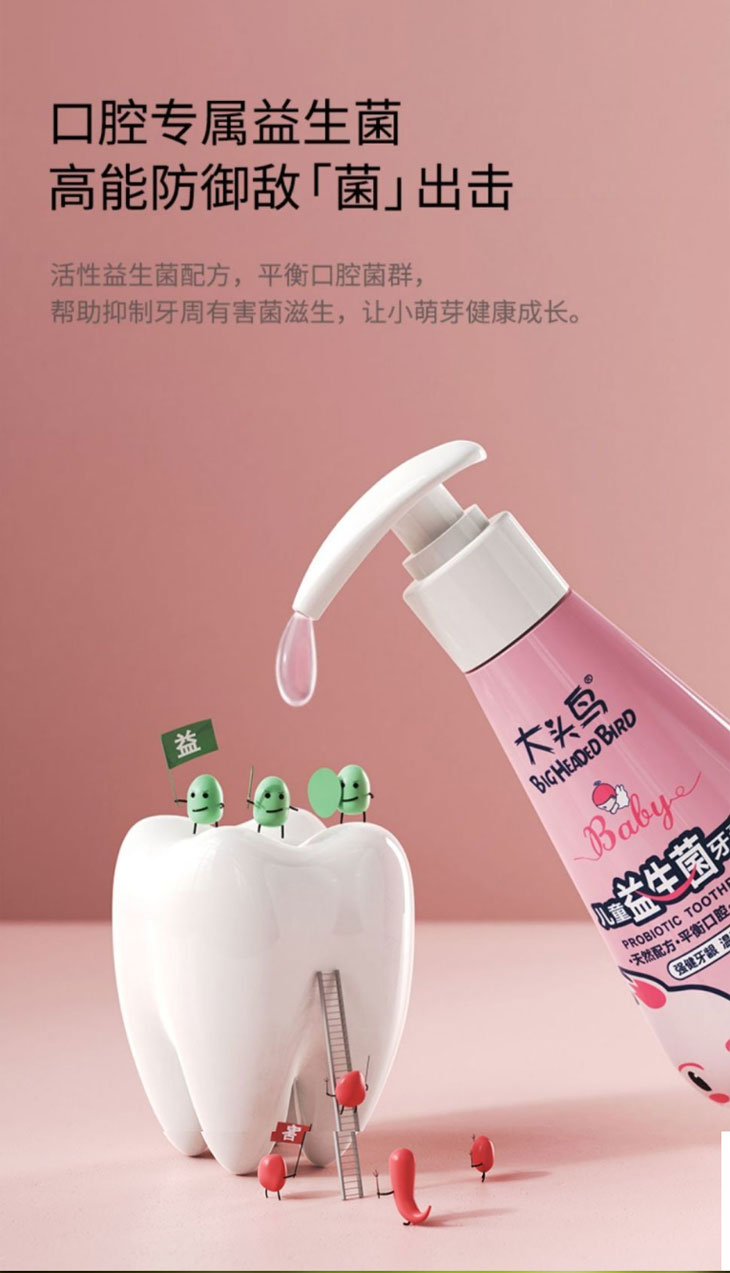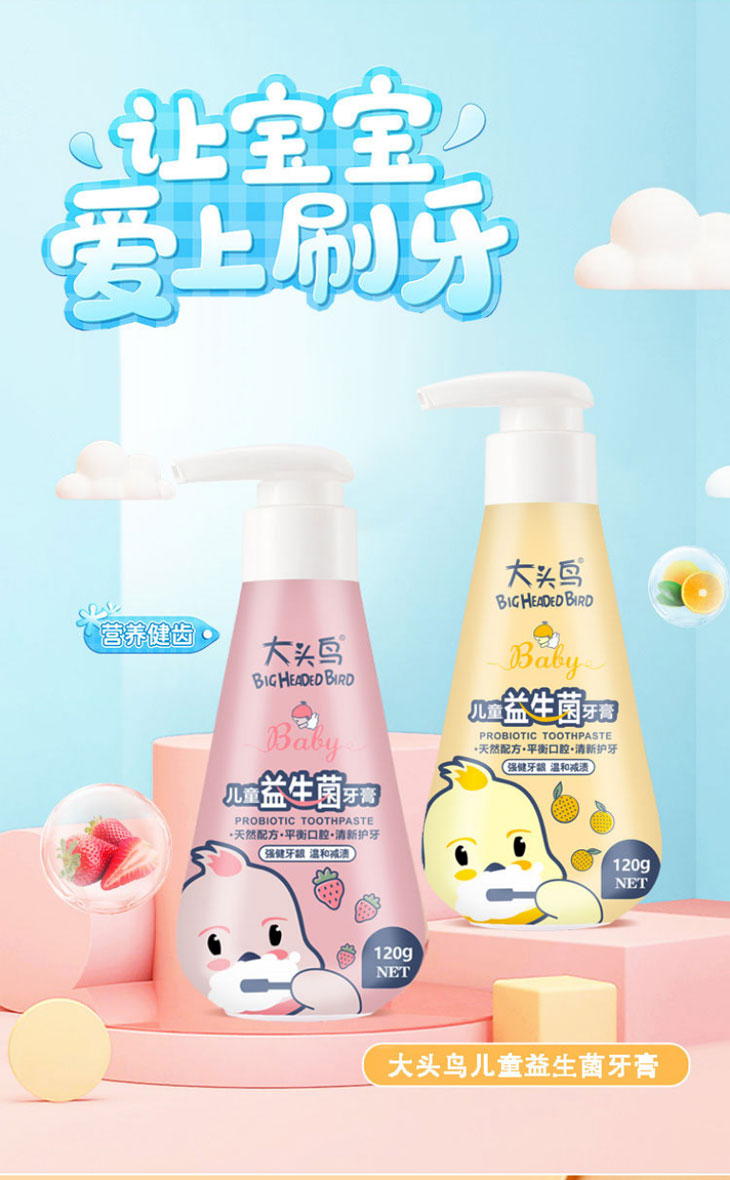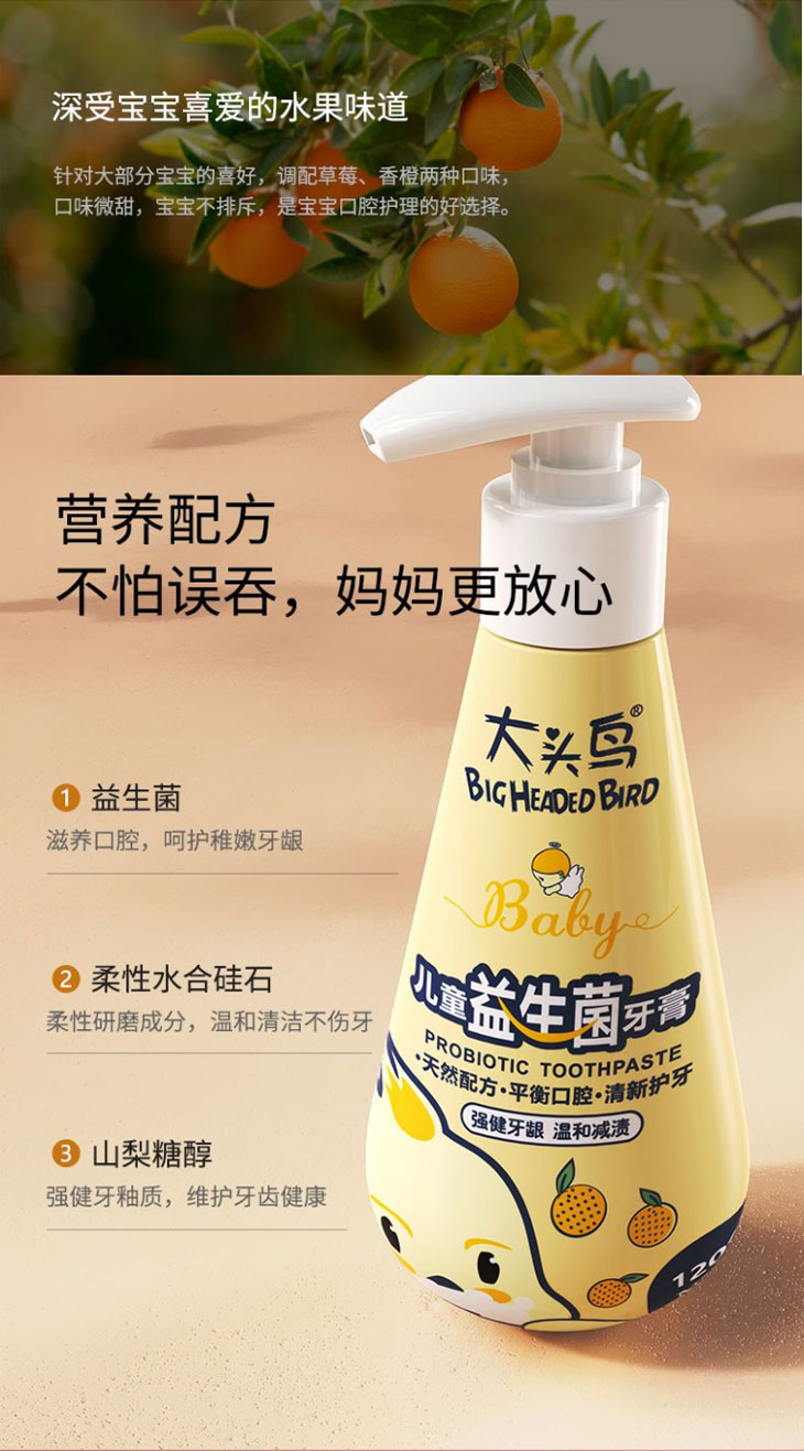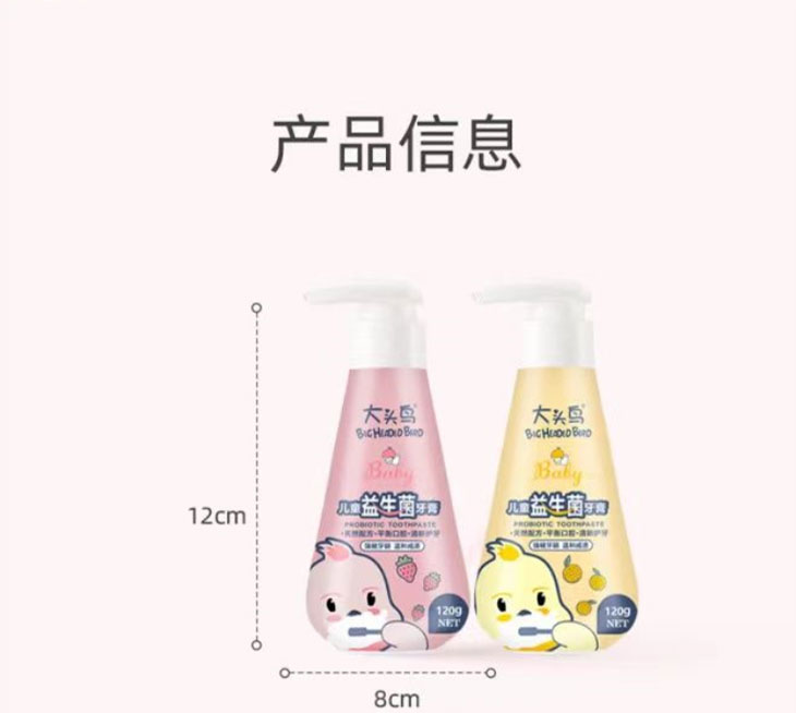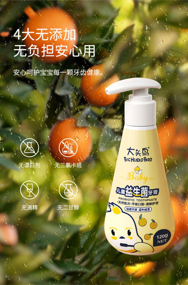 儿童牙膏 益生菌按压式儿童牙膏无氟防蛀牙120g换牙期防蛀1-3-6-12