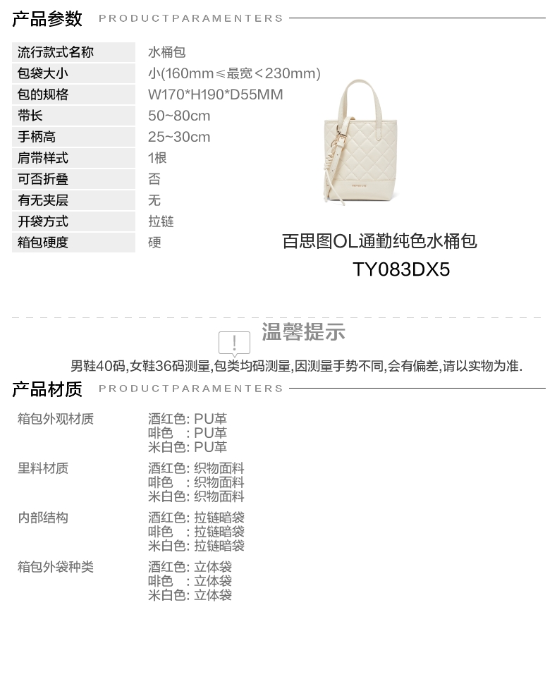 【云粉节】BF楼百思图2025冬季新款水桶包时尚复古通勤女包TY083DX5吊牌价499.现价299
