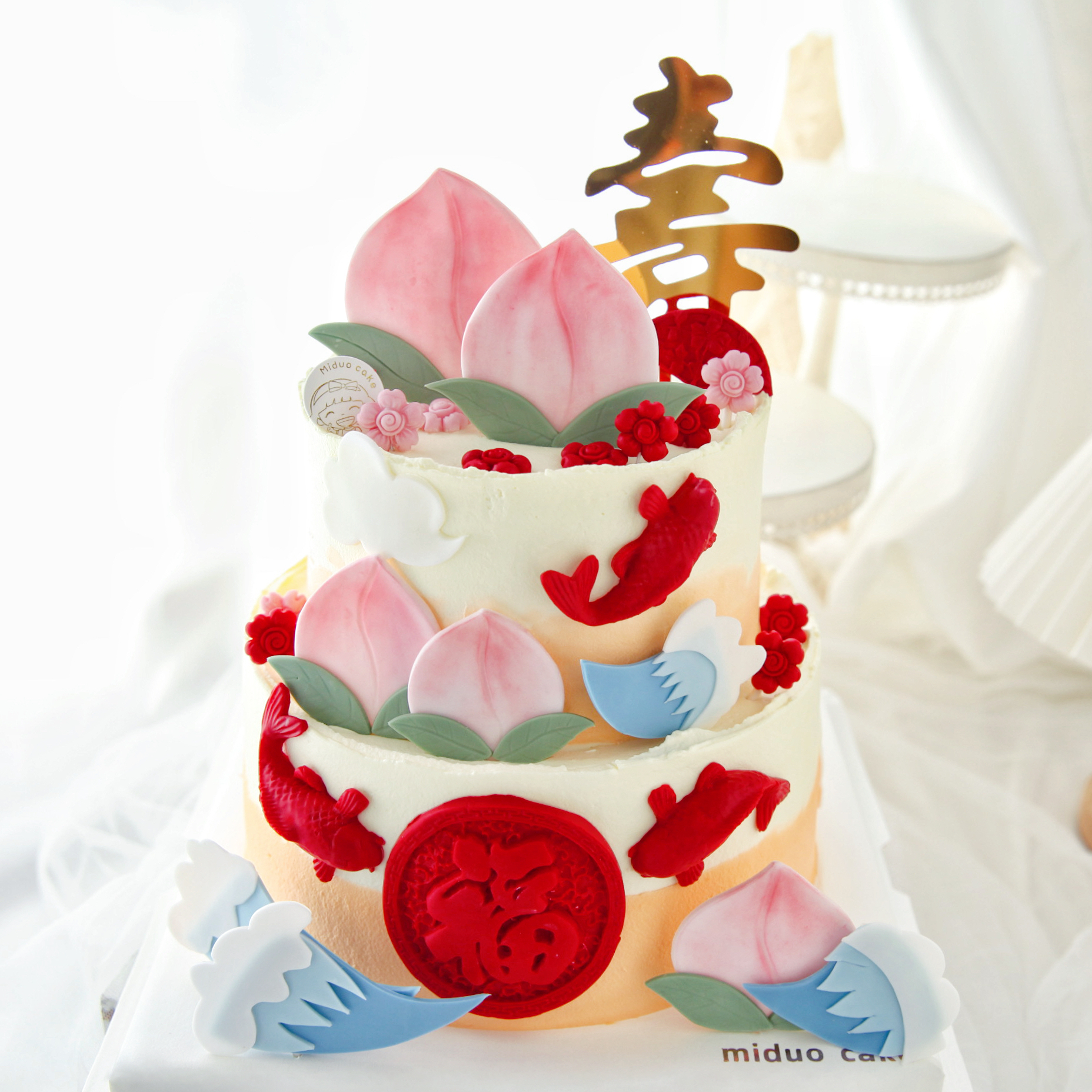 祝寿款 寿桃 锦鲤 翻糖 双层 贺寿
