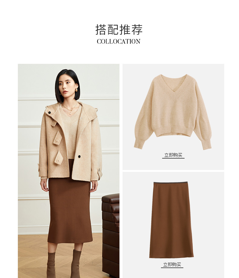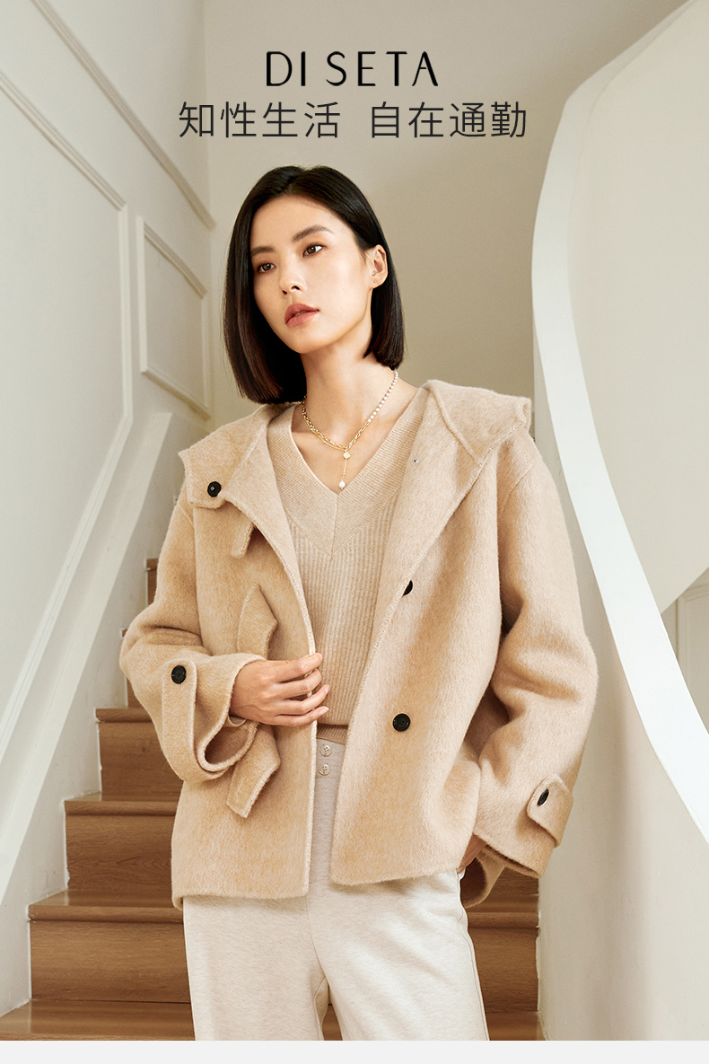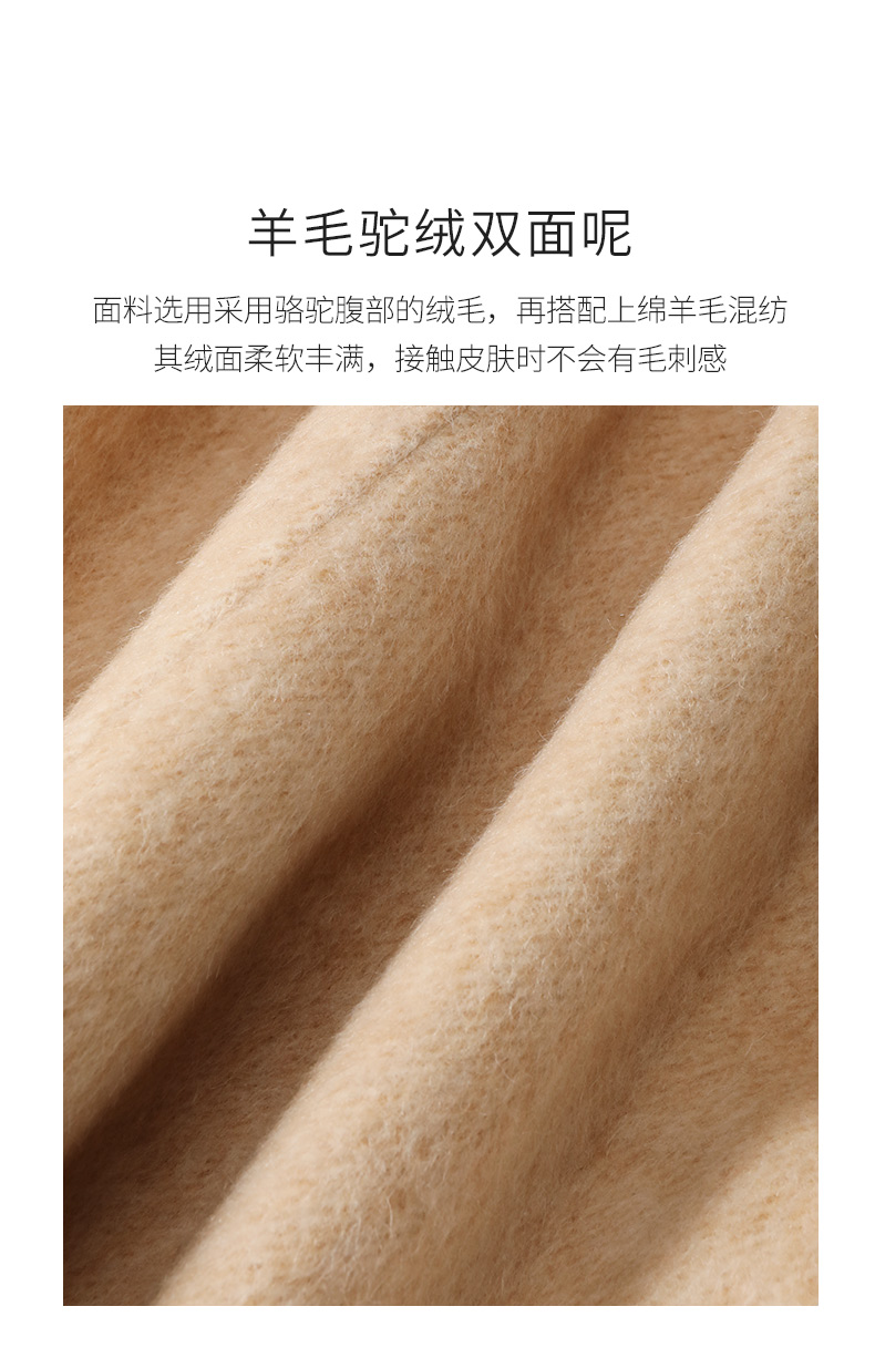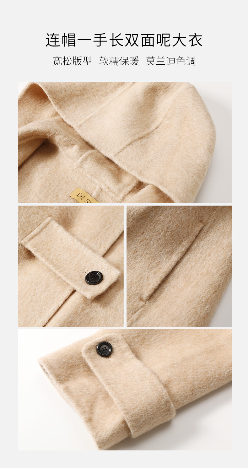 【驼绒】玳莎双面呢短款外套冬季新款驼色连帽一手长毛呢大衣 DD39304