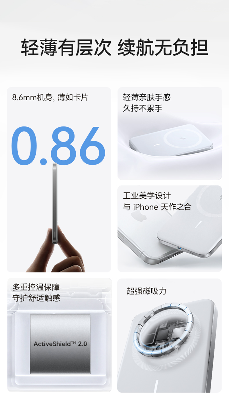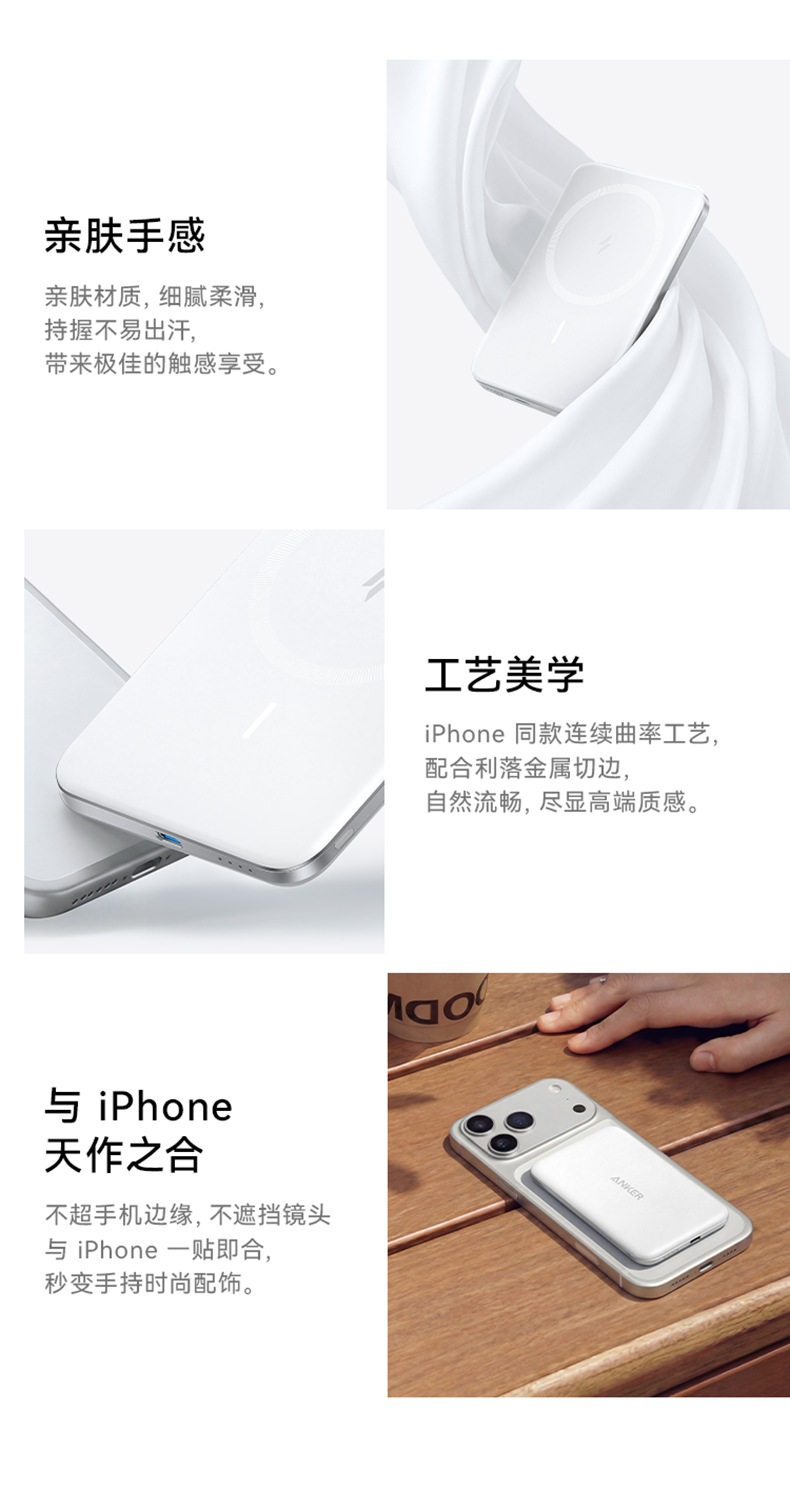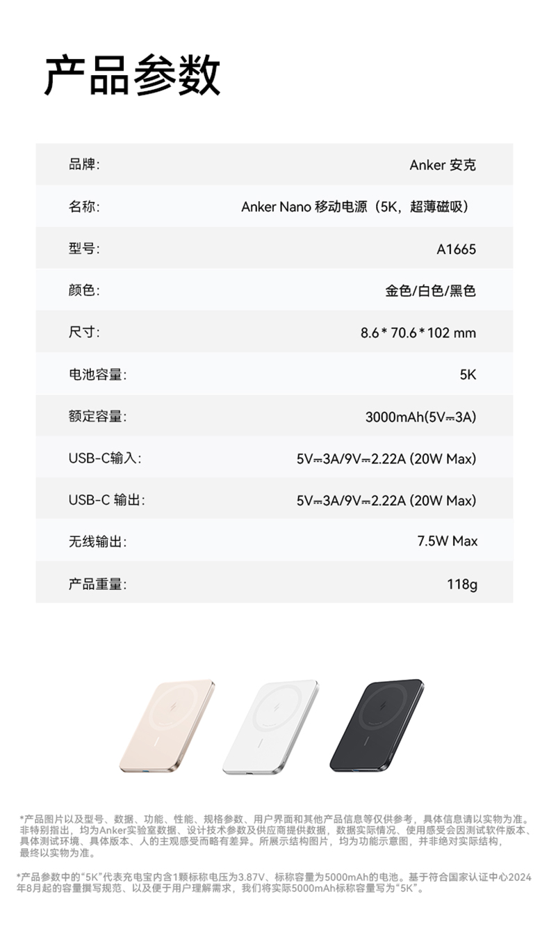 【热销】Anker安克 MagGo系列卡片超薄磁吸充电宝5000mAh小巧便携移动电源 A1665