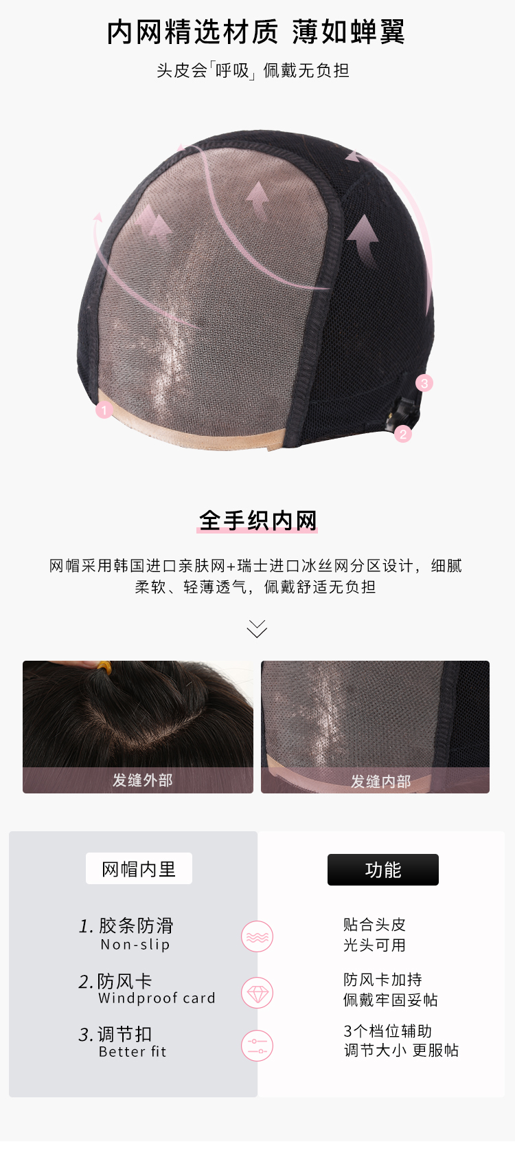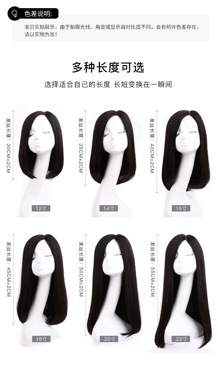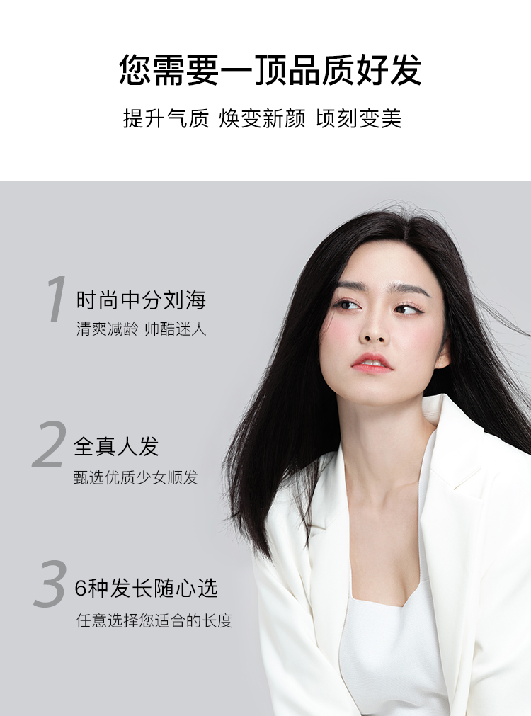 瑞贝卡假发女手织真人发中分锁骨发齐肩中长直发时尚网红气质头套