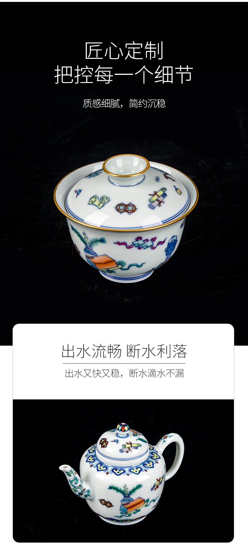 青花斗彩博古纹套组