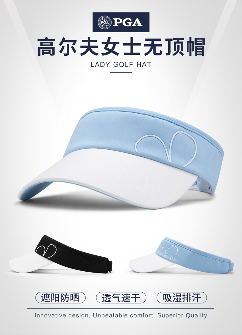美国PGA 新品 高尔夫女士帽子 球帽 无顶透气防晒帽 吸汗鸭舌帽