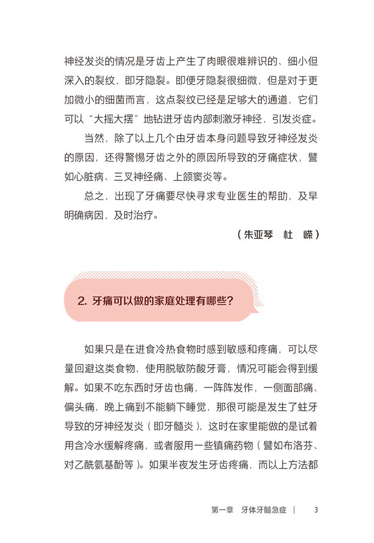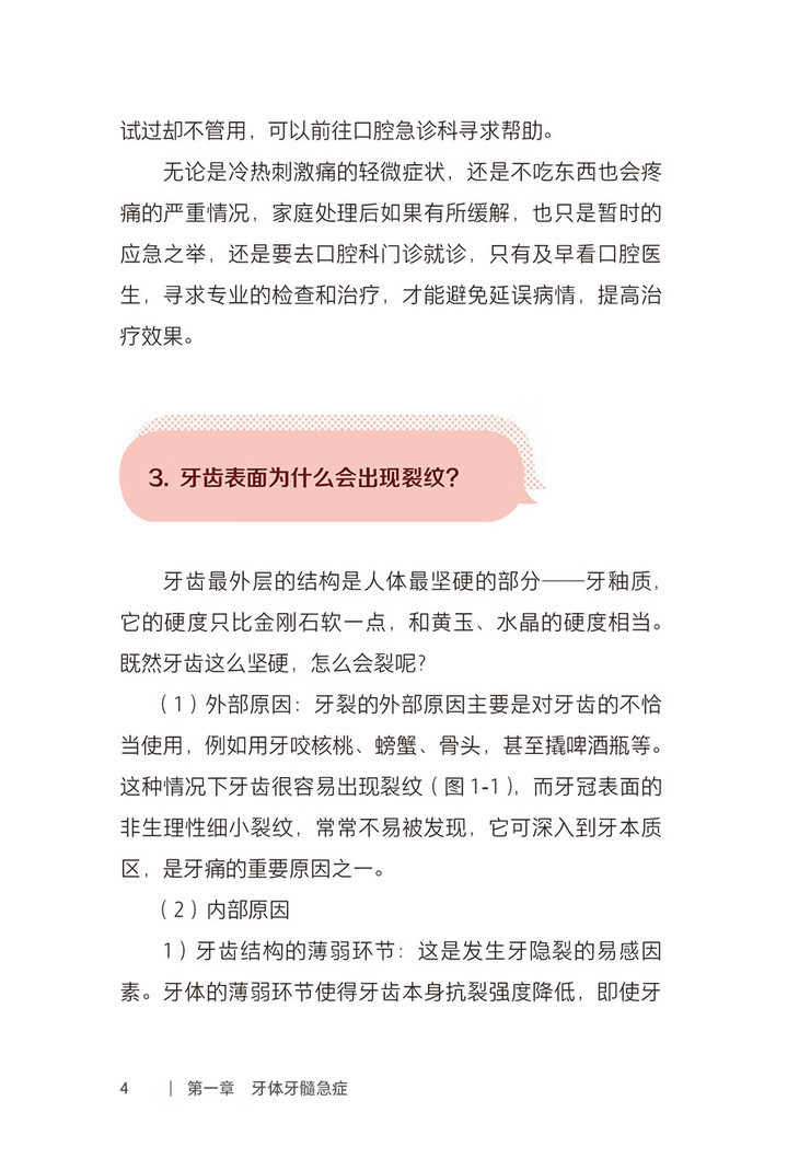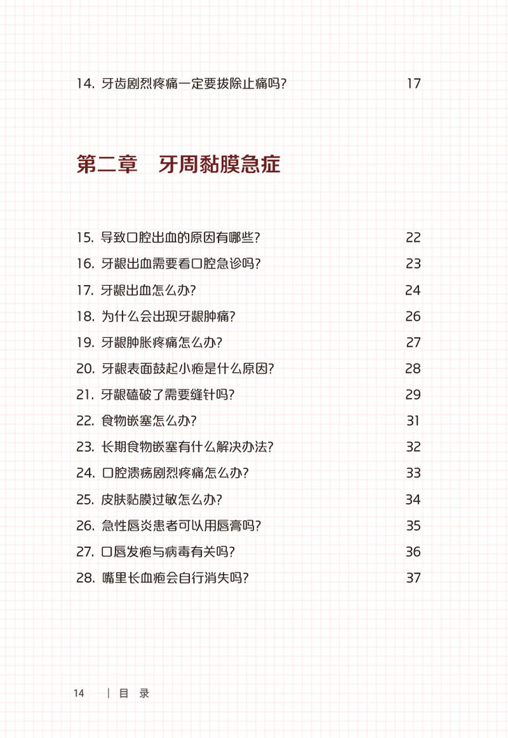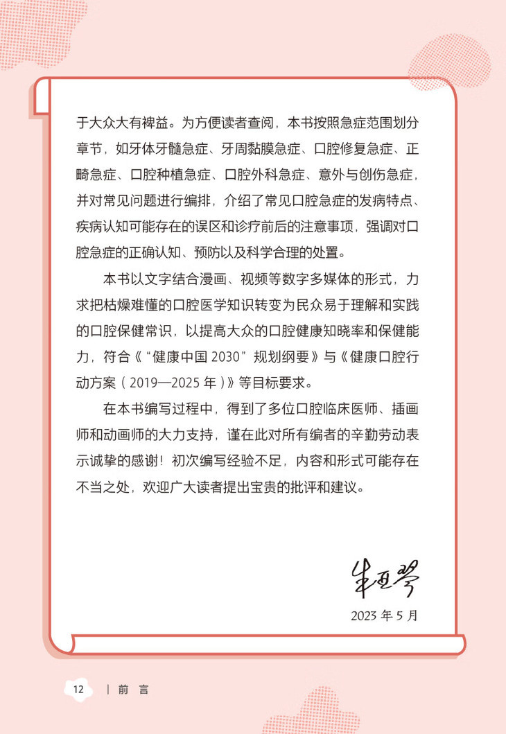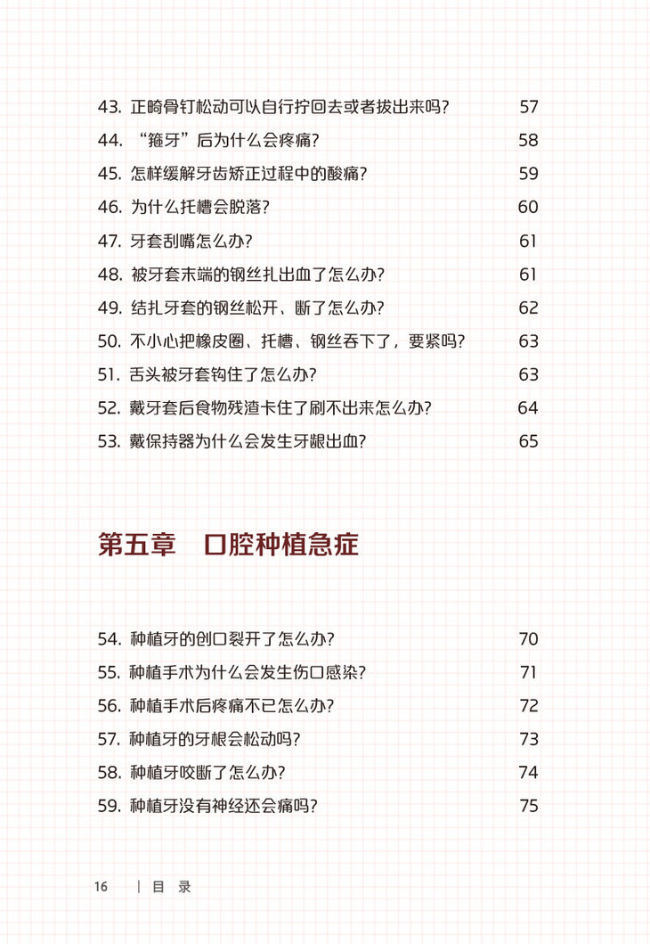 各类口腔急症或轻或重都给广大民众的身心健康带来了困扰,而对口腔急症的及时和恰当处理可以缓解不适症状,并减轻治疗后的并发症和不良反应,故了解相关的科普知识对于大众大有裨益。本书按照急症范围划分章节,如牙体牙髓急症、牙周黏膜急症、口腔修复急症、正畸急症、口腔种植急症、口腔外科急症、意外与创伤急症,并对常见问题进行编排,介绍了常见口腔急症的发病特点、疾病认知可能存在的误区和诊疗前后的注意事项,强调对口腔急症的正确认知、预防以及科学合理的处置。