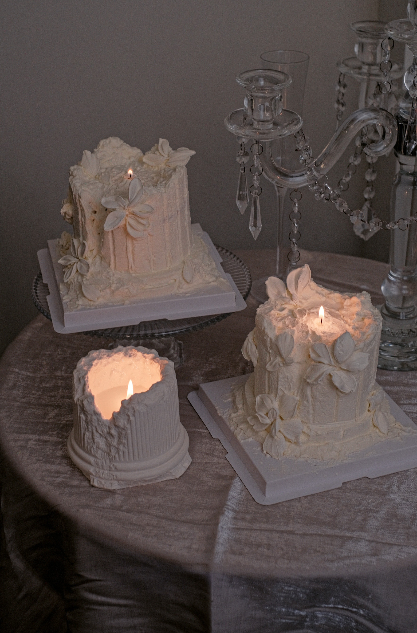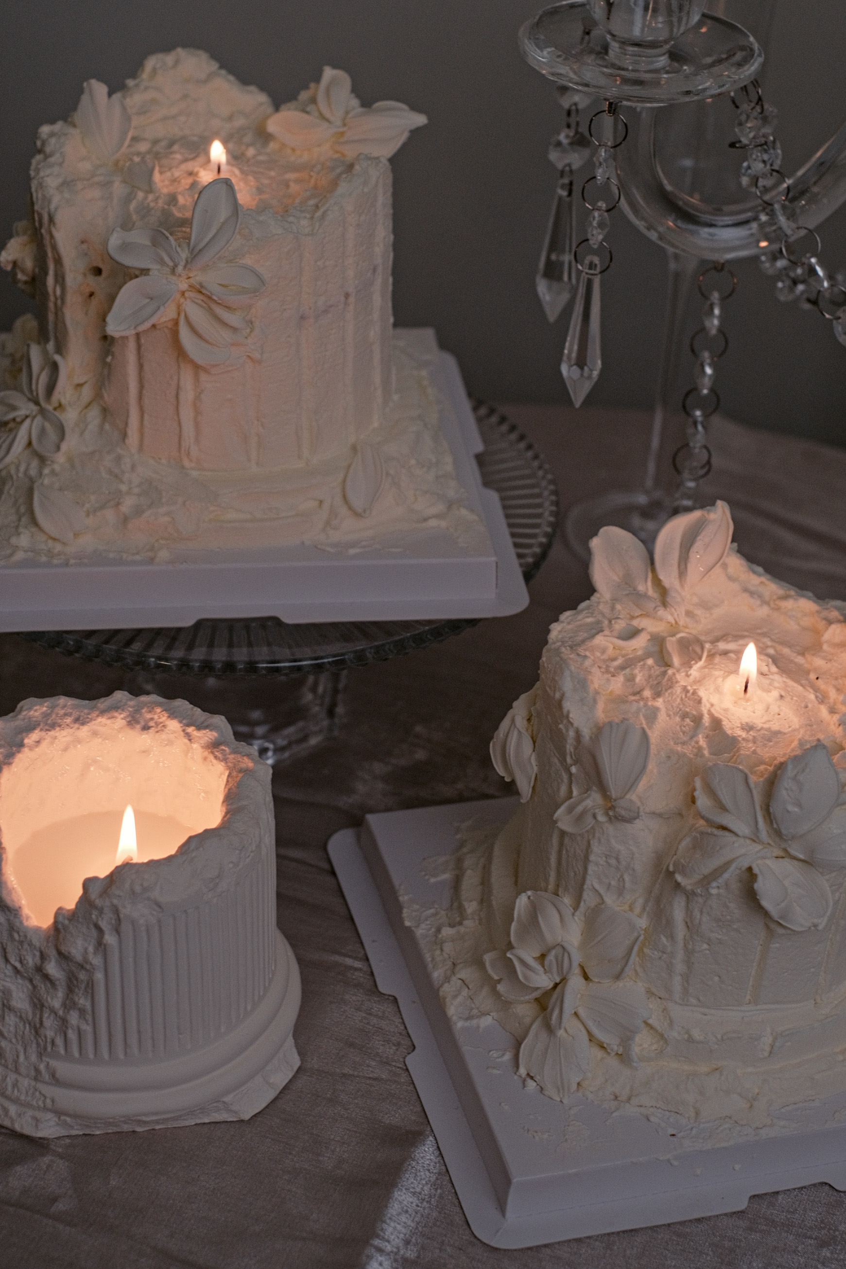 由于这款蛋糕是加高的且造型比较复杂,我们会使用奶油霜抹面来确保蛋糕的稳定性。